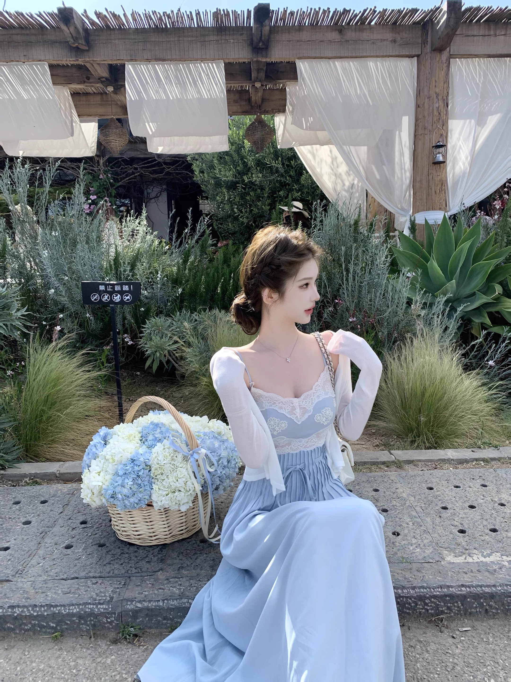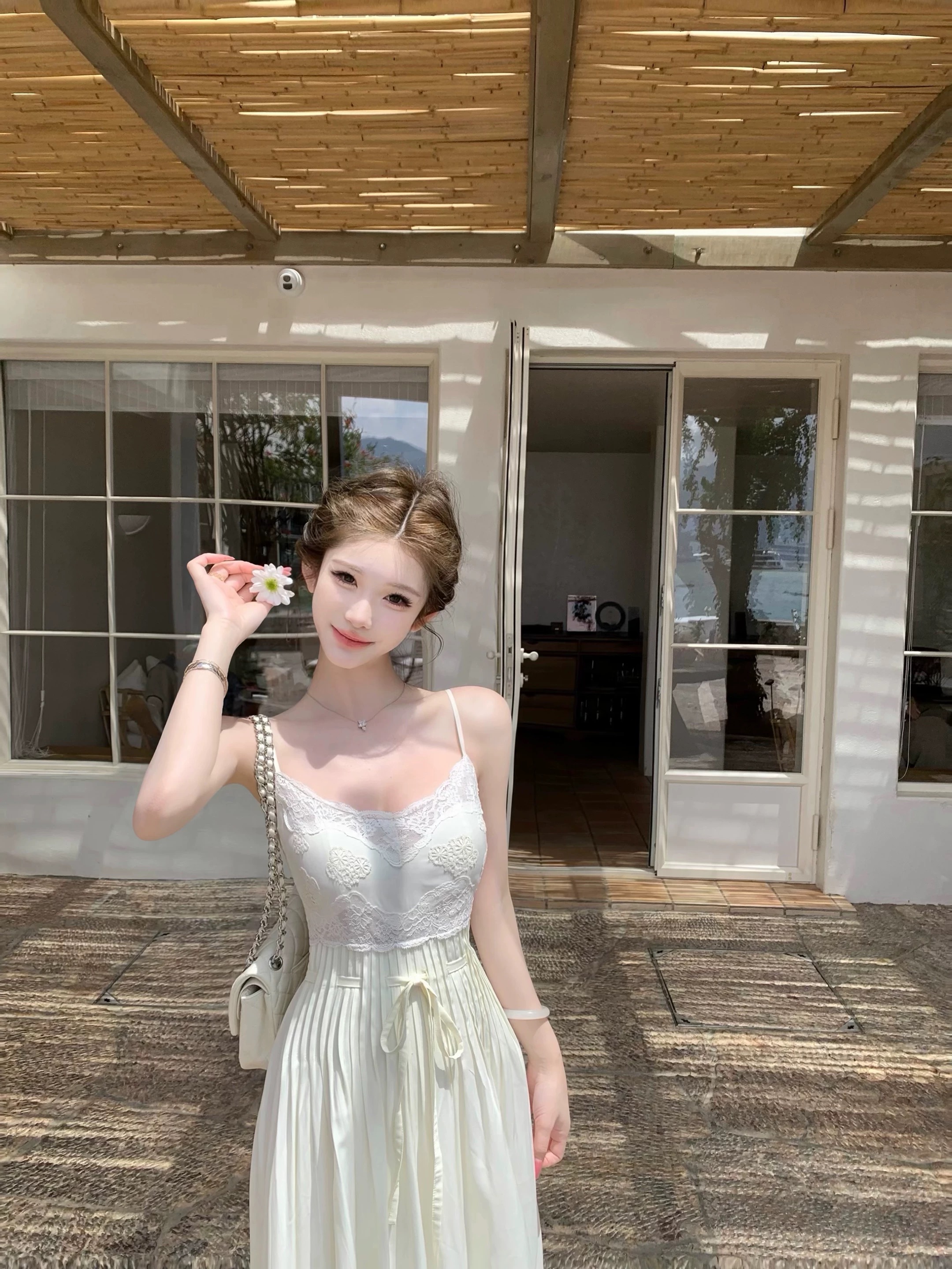 04 28 jmshopfoloria 매너 레이스 조각 슬립 여성 드레스 허리 수축 슬림해 보이는 롱 스커트