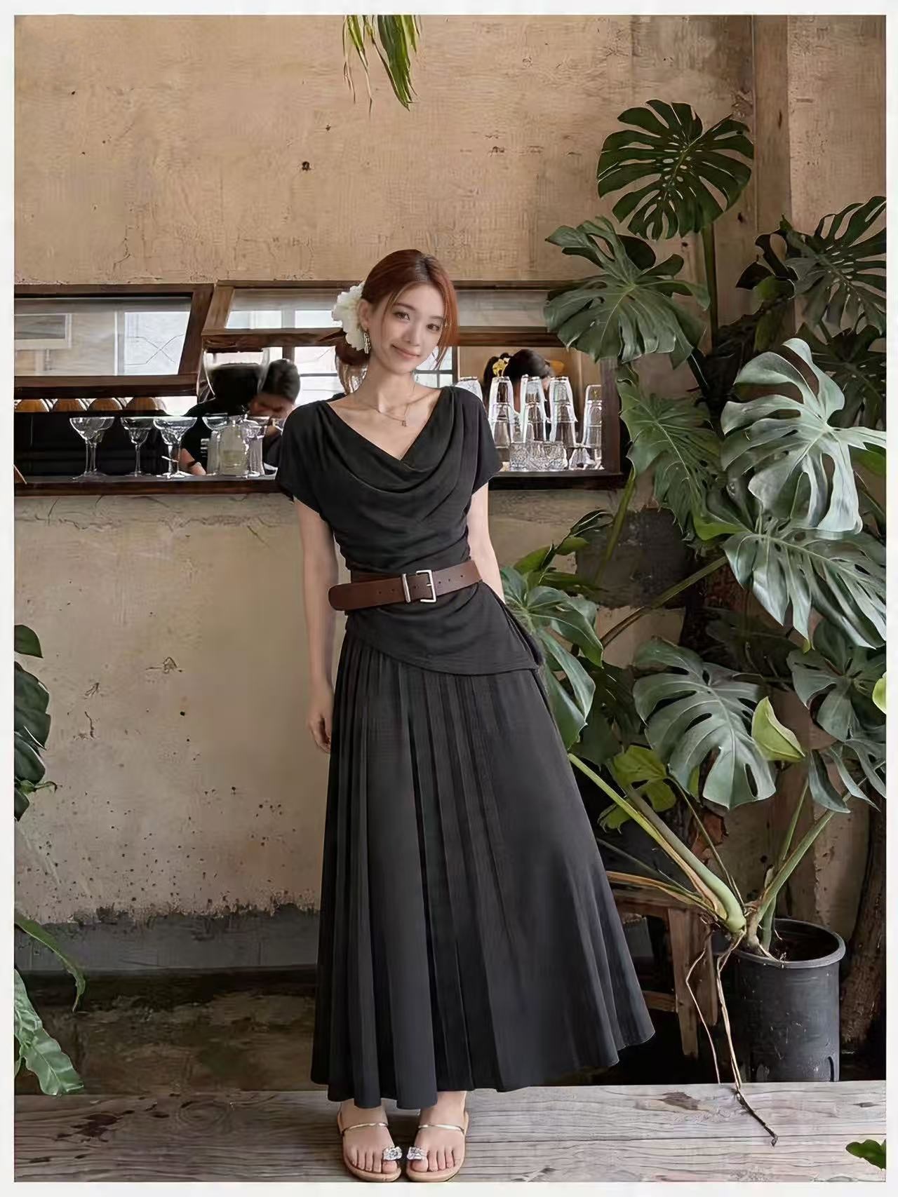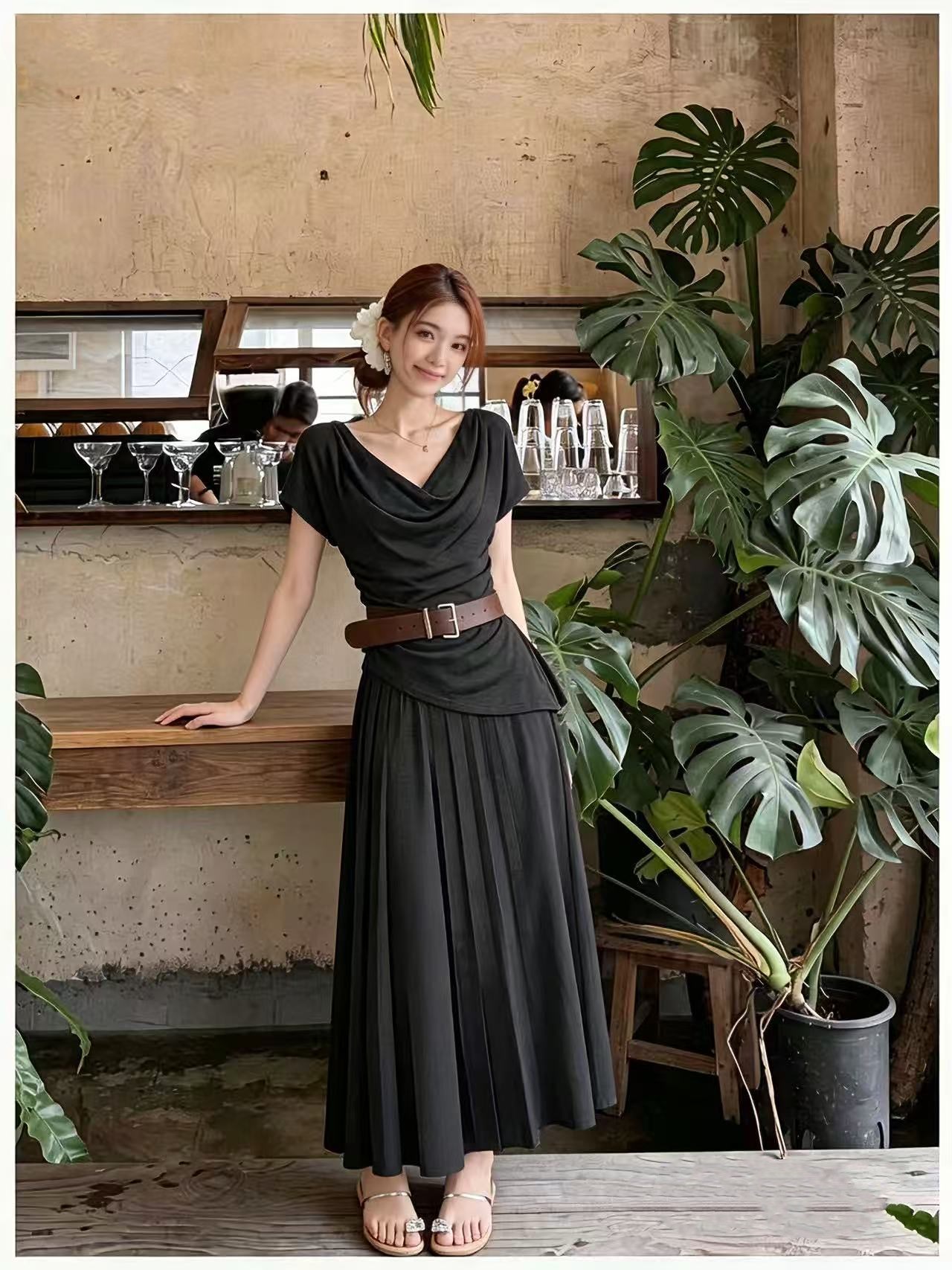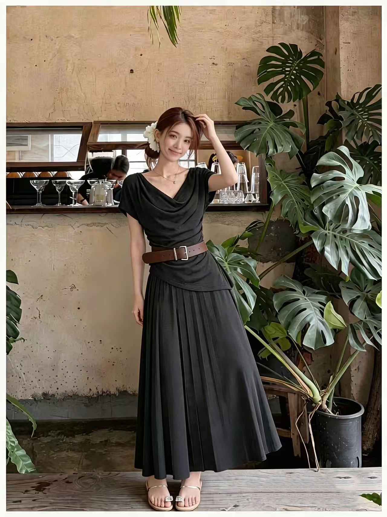 흔들다 칼라 불규칙 맨위 반신 스커트 두 조각 여성 세트 2026 여름 새로운 빅 사이즈 슬림해 보이는 도루 센스 세트 드레스