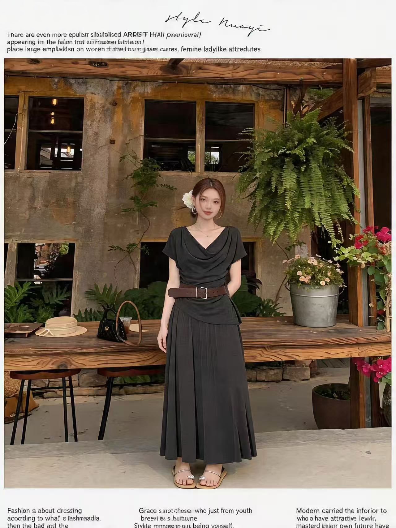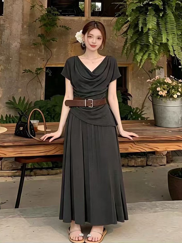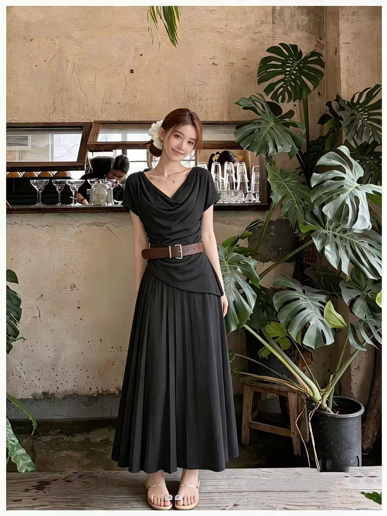 흔들다 칼라 불규칙 맨위 반신 스커트 두 조각 여성 세트 2026 여름 새로운 빅 사이즈 슬림해 보이는 도루 센스 세트 드레스