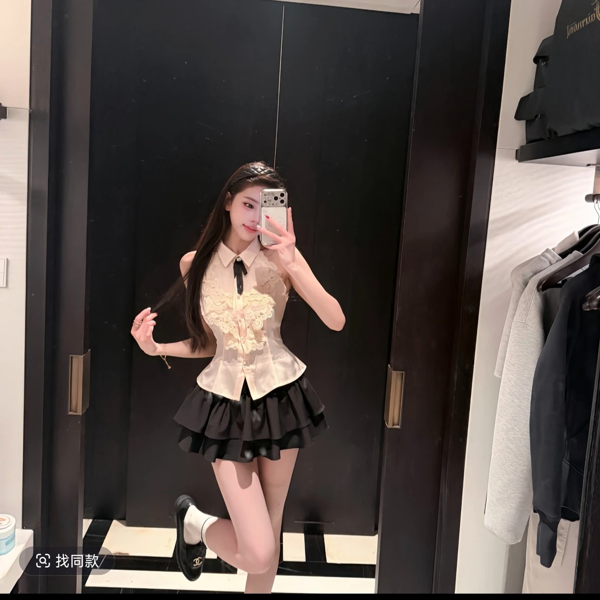 실사 달콤함 소녀 바람 레이스 패치워크 도트 무늬 캐미솔 패션 도루 센스 루즈핏 연령 감소 맨위 chic