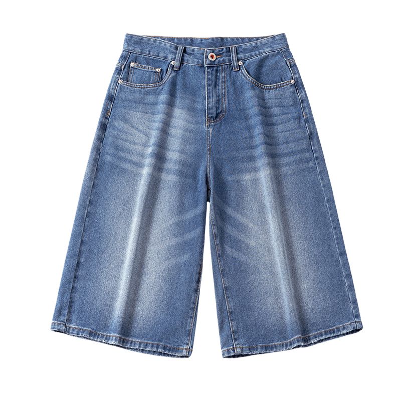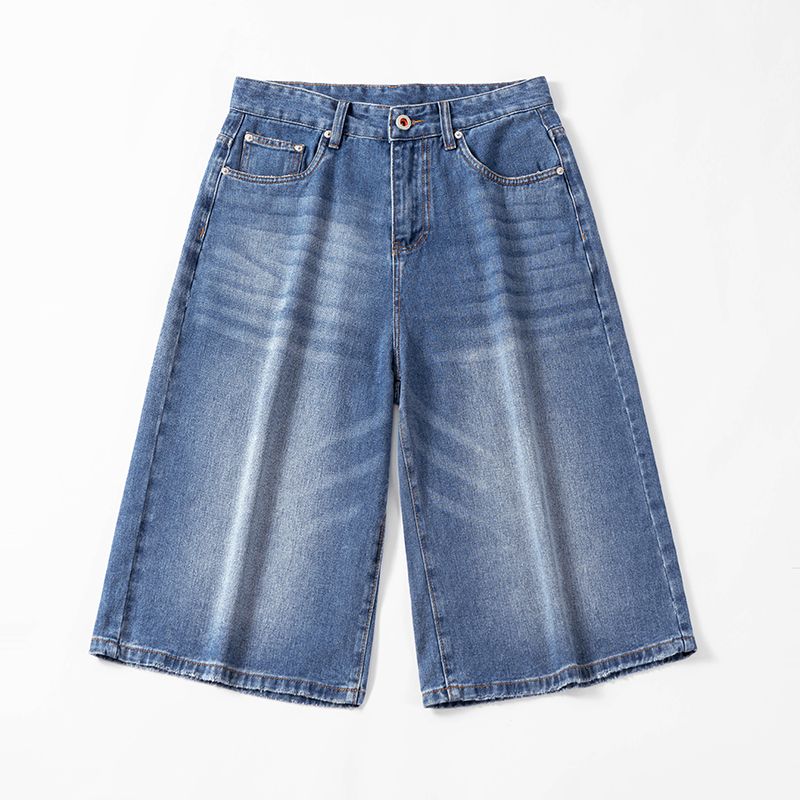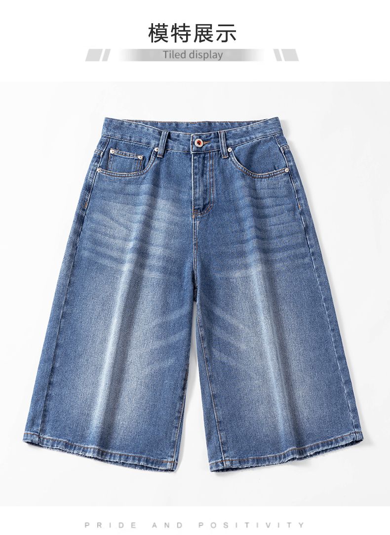 남성 레트로 데님 반바지 스트레이트 루즈핏 트렌드 캐주얼 오부 바지 여름 얇은 스타일 다용도 바지 인터넷 에디션