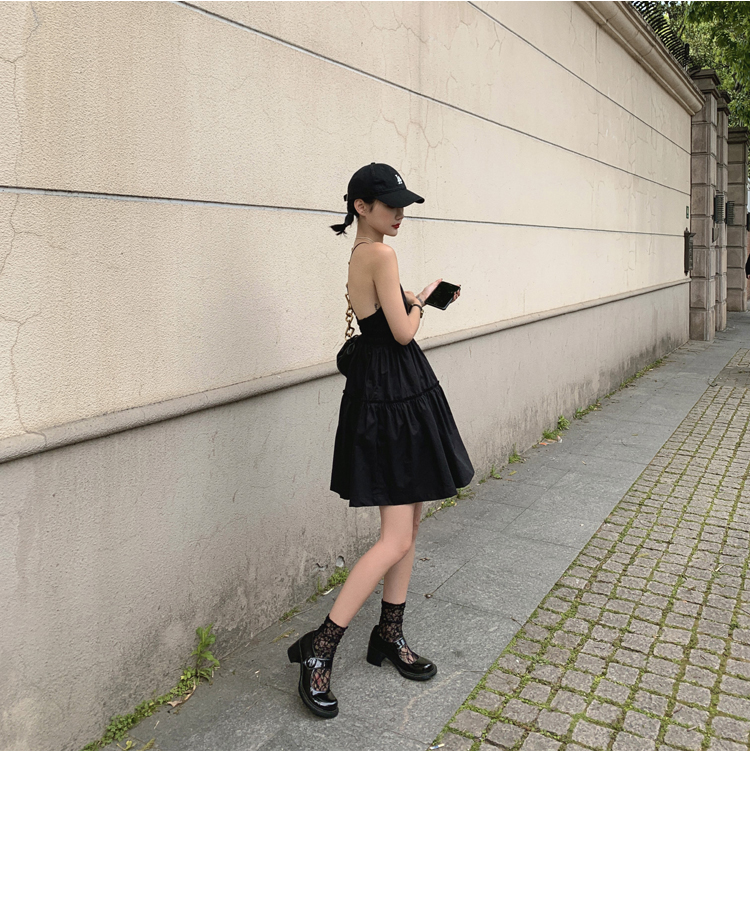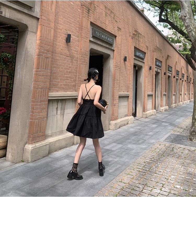 실사 2026 봄 여름 새로운 백리스 홀로우 아웃 품격 몸매 가꾸기 허리 수축 큰 진자 롱 스커트 단어 조끼 여성 드레스