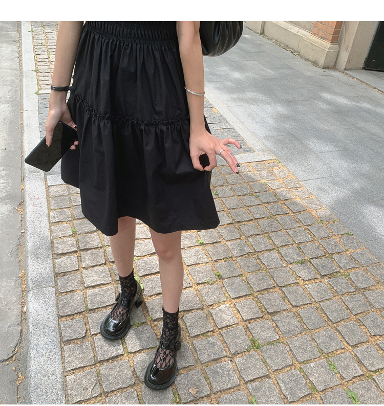 건조한 장미 새로운 디자인 센스 작은 대중 고급 센스 주간 실크 프릴 다크 드레스