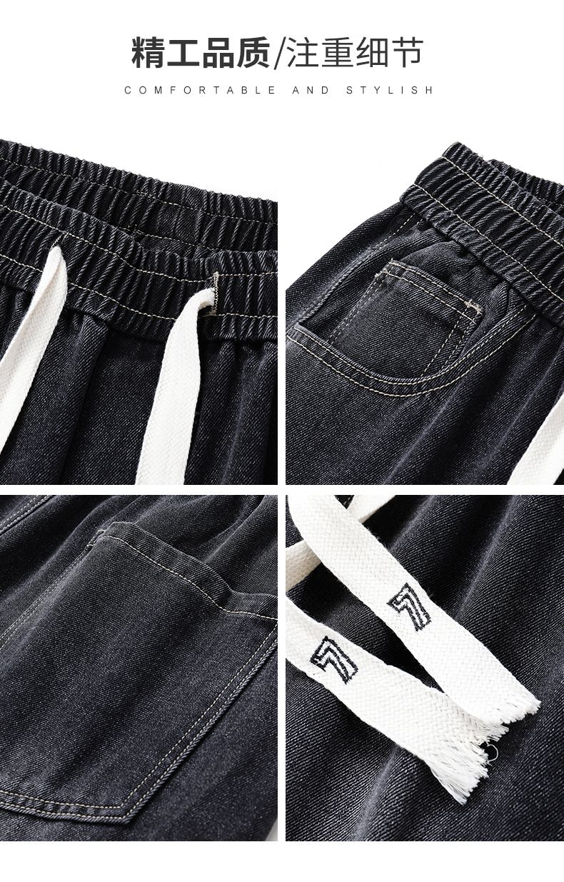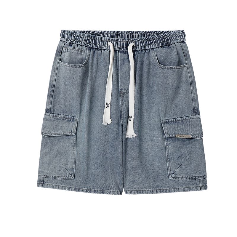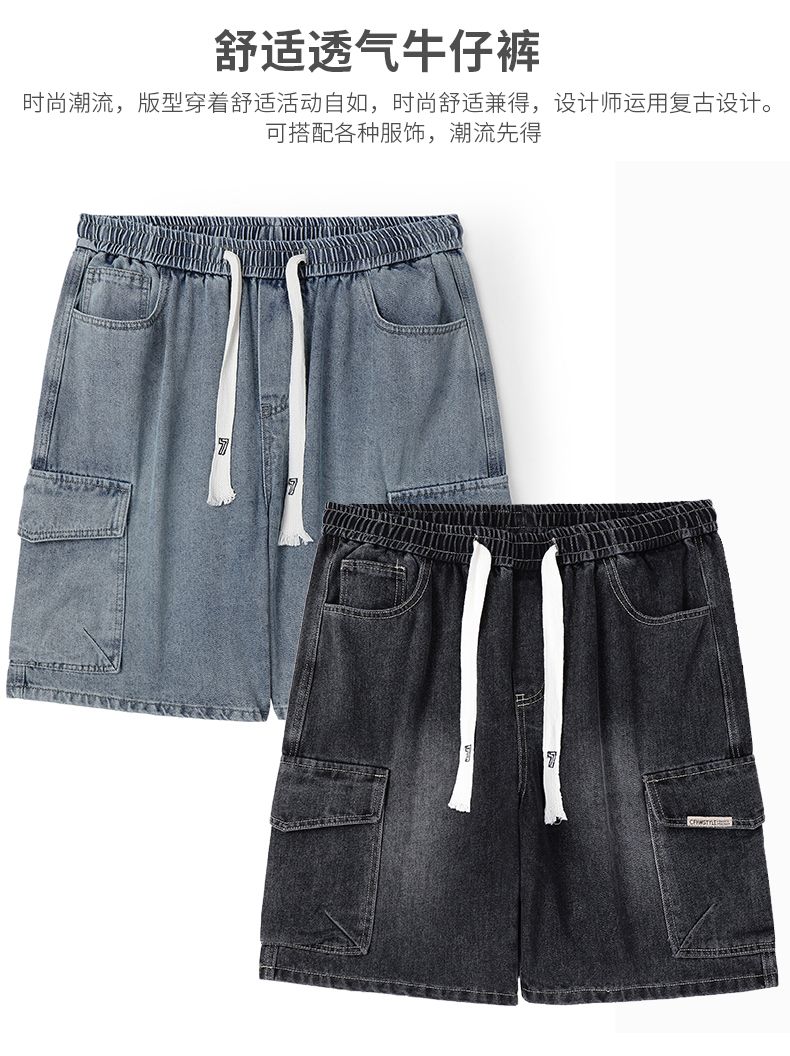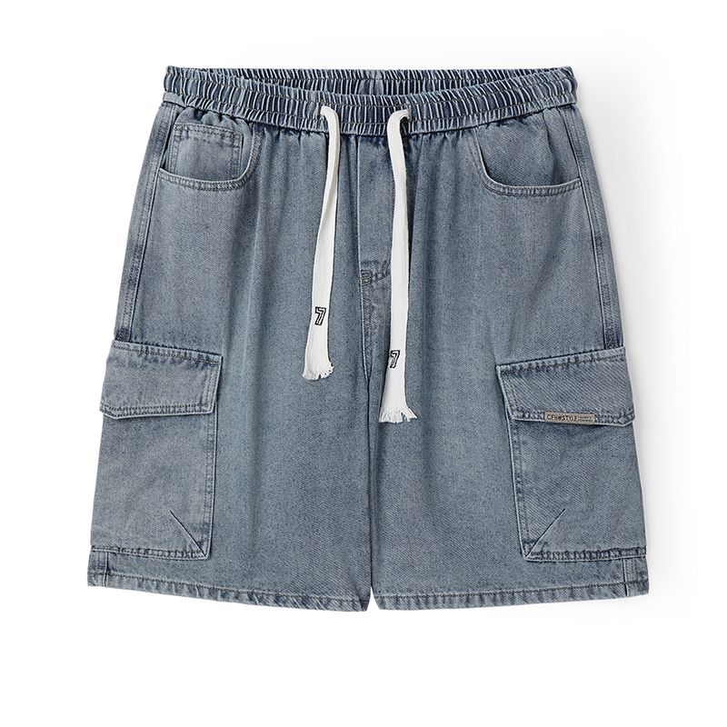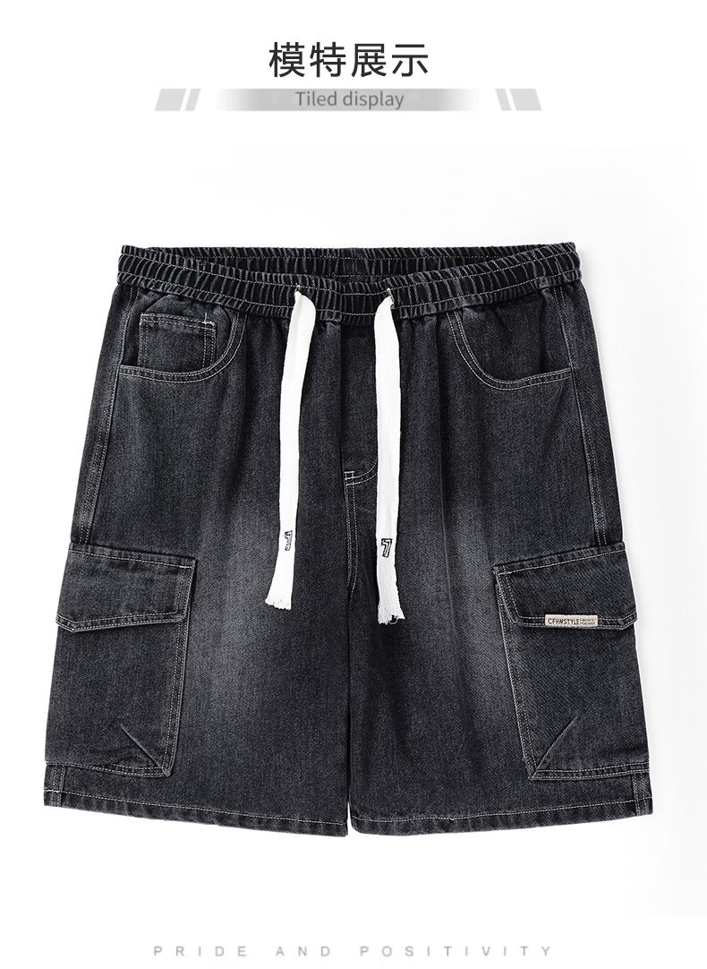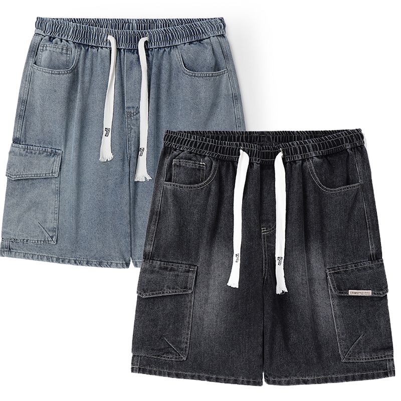 남성 레트로 데님 반바지 스트레이트 루즈핏 트렌드 캐주얼 오부 바지 여름 얇은 스타일 다용도 바지 인터넷 에디션