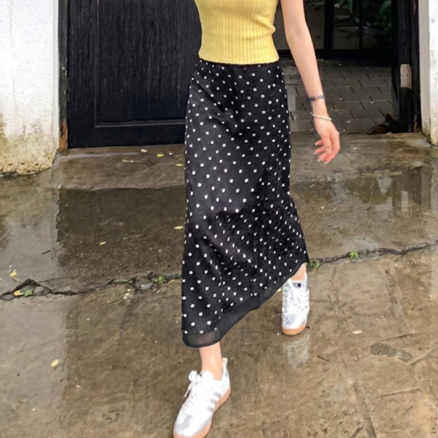 실사 빅 사이즈 여성 의류 2026 여름 새로운 도트 무늬 반신 스커트 중간 길이 하이웨이스트 치마 다용도 슬림해 보이는 A라인 스커트