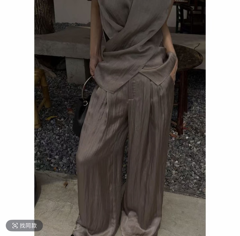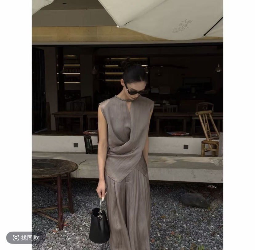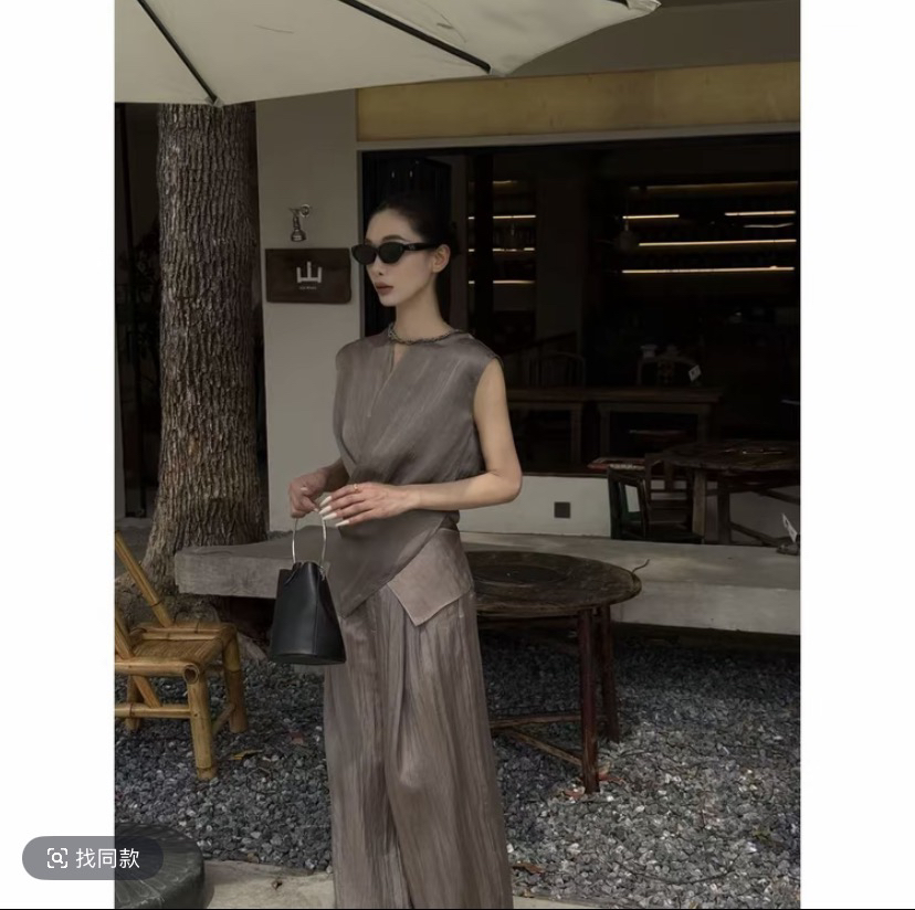 한국 여성 주님 여름 한 부서 캐주얼 조끼 셔츠 디자인 센스 바닥 청소 와이드 레그 팬츠