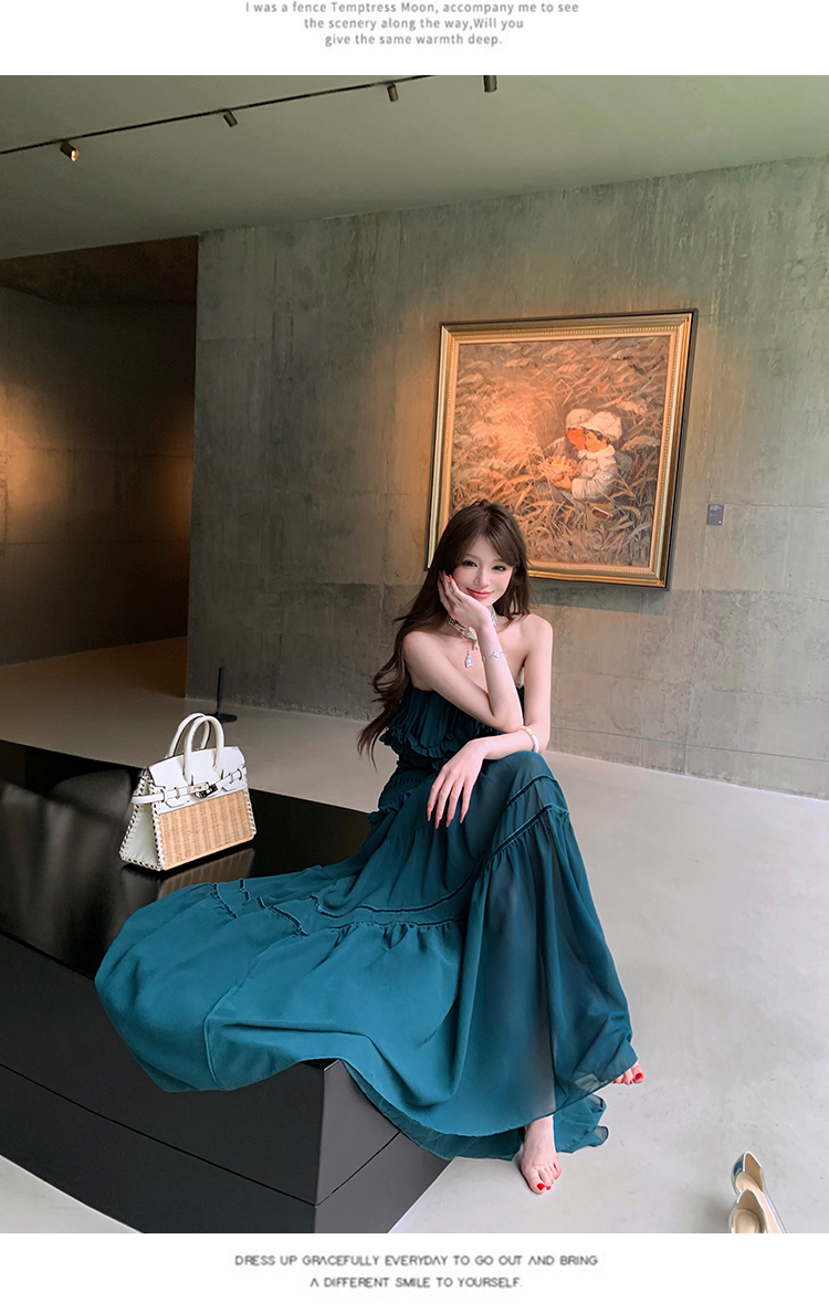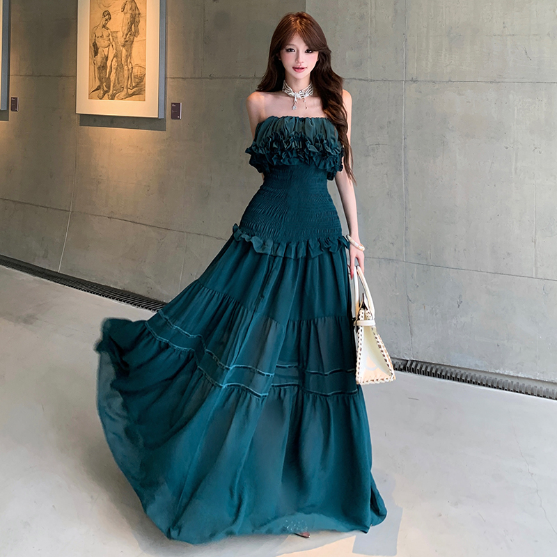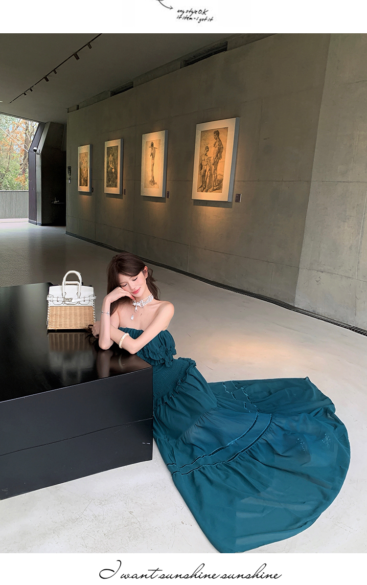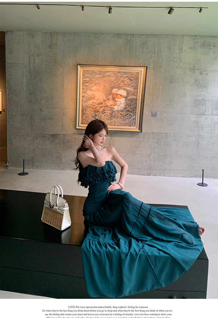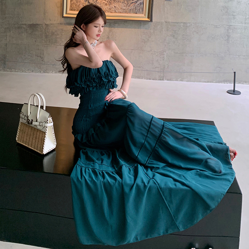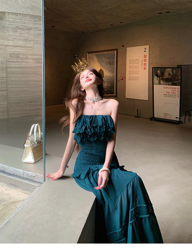 여신 치마 여름 슈퍼 잘 생긴 ~ 중 휴가 바람 프릴 튜브탑 여성 드레스 명문 여성 바람 고급 센스 예복 치마