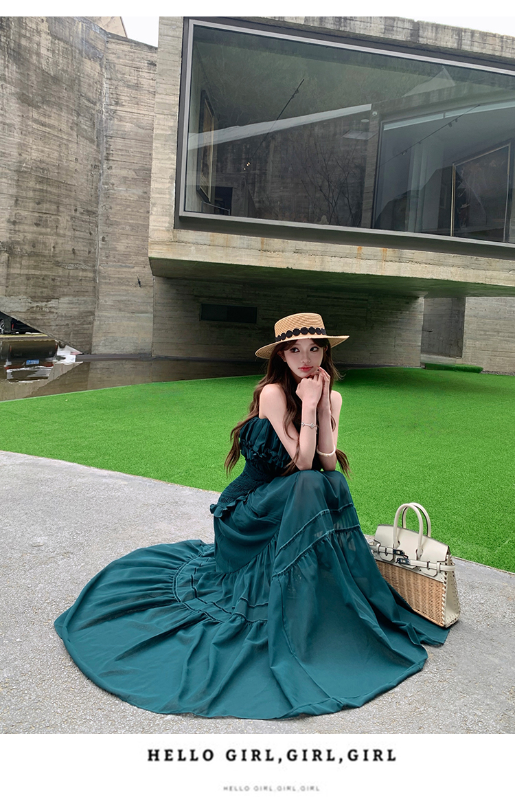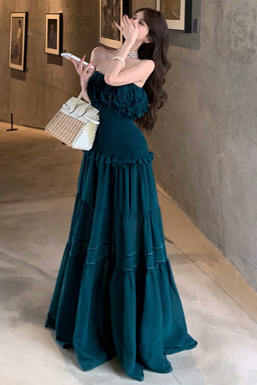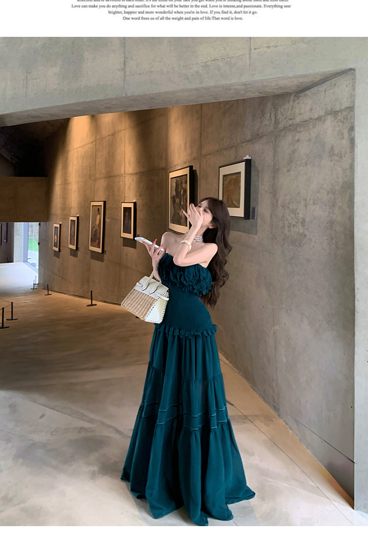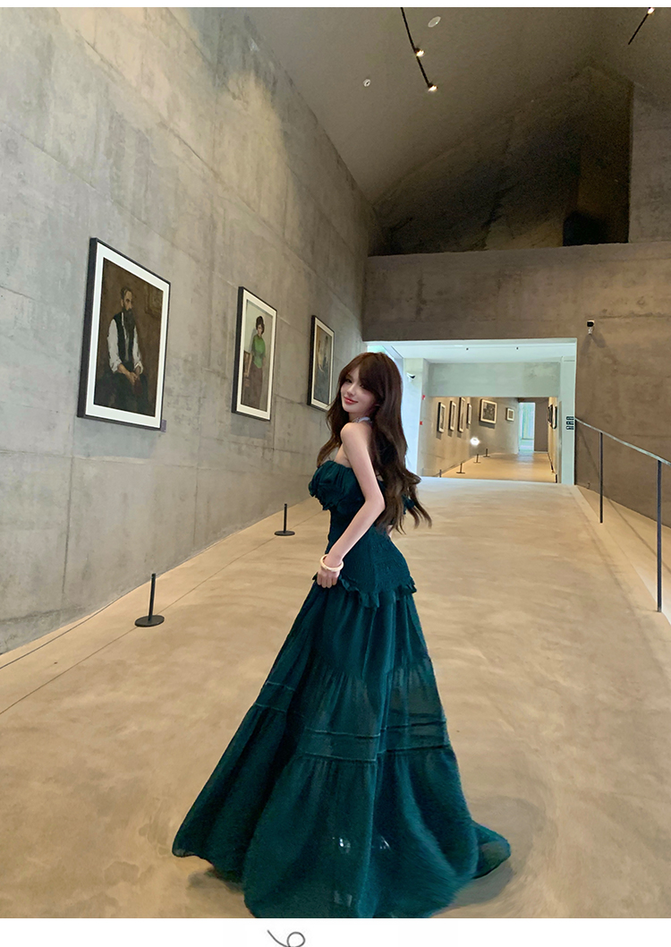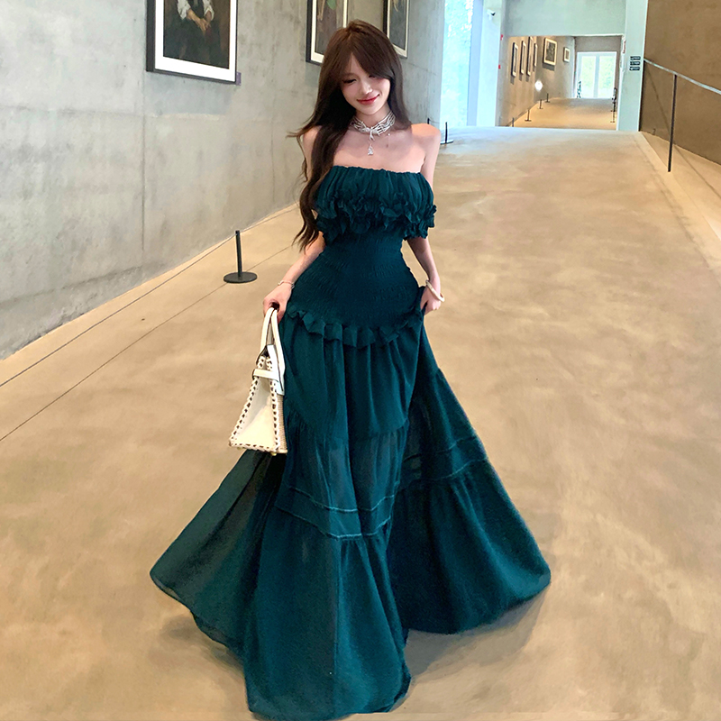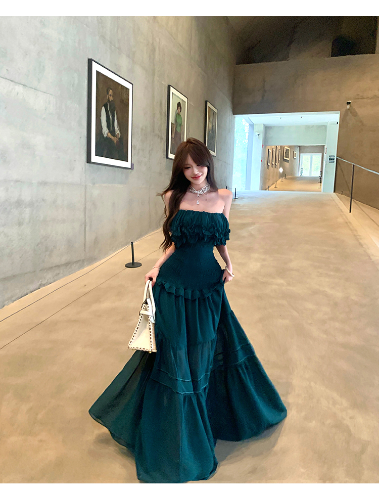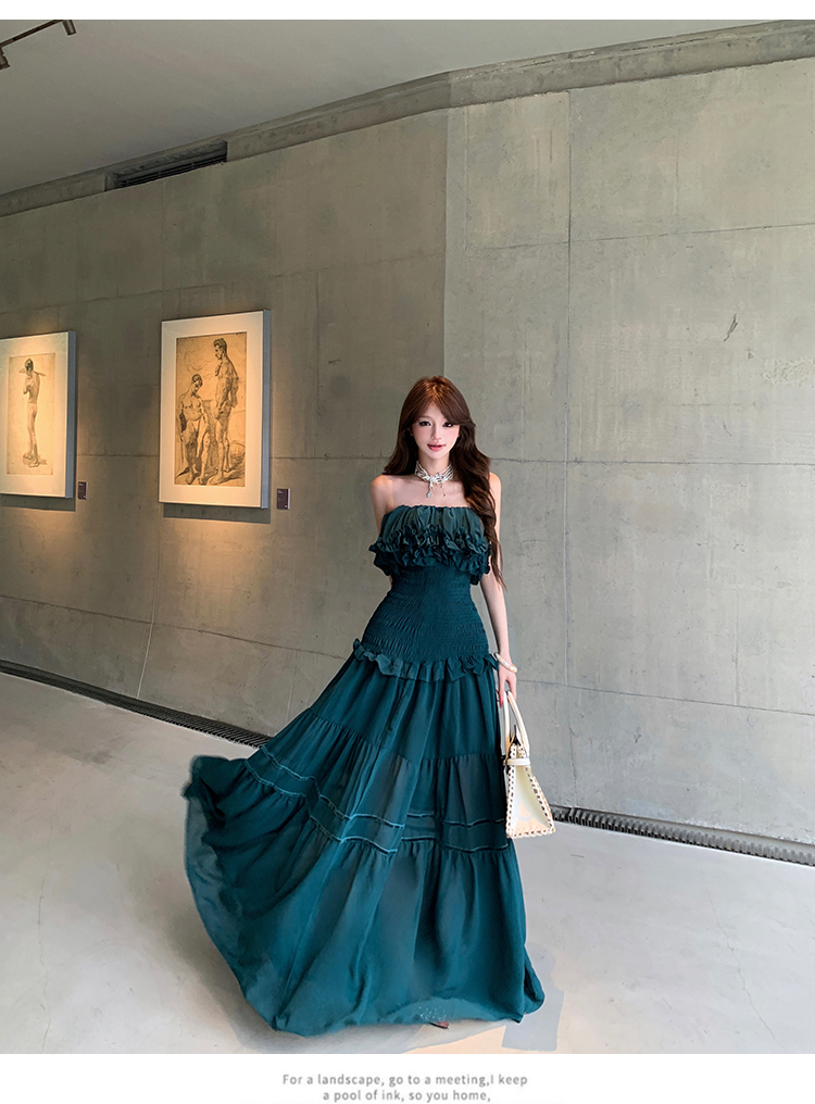 여신 치마 여름 슈퍼 잘 생긴 ~ 중 휴가 바람 프릴 튜브탑 여성 드레스 명문 여성 바람 고급 센스 예복 치마