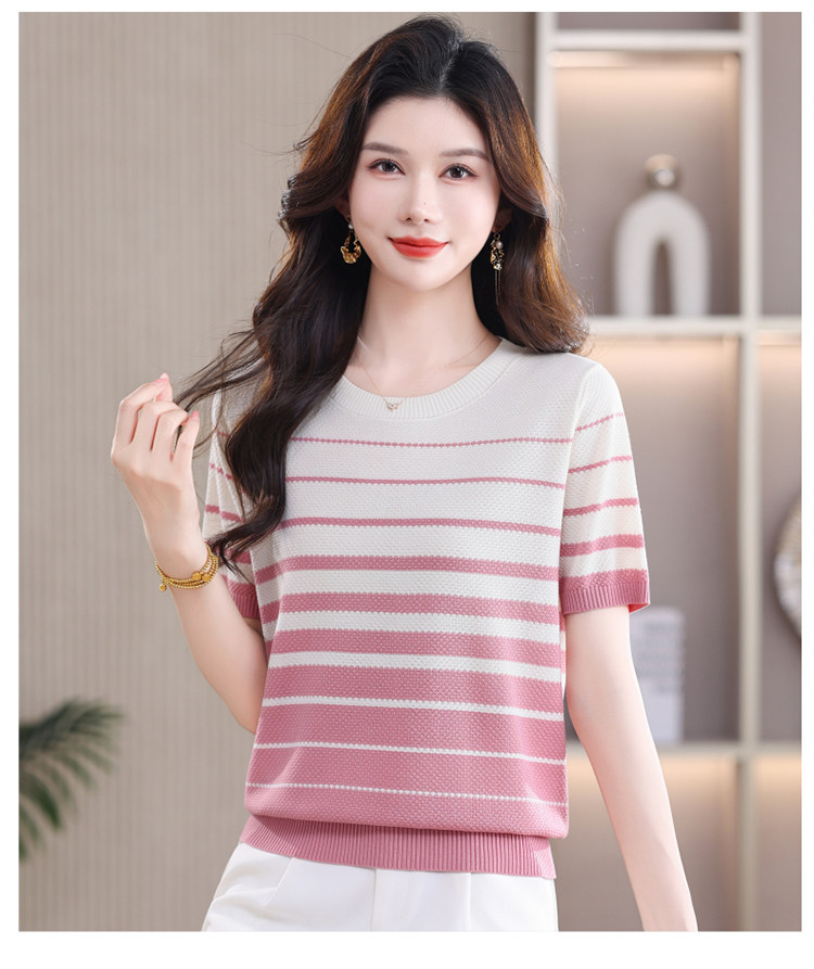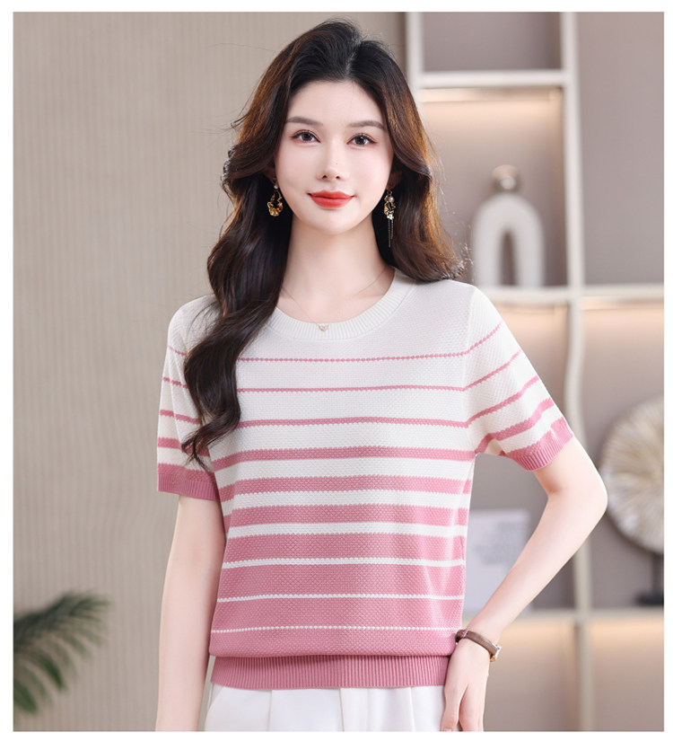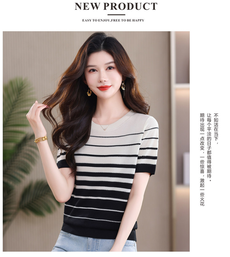 여름 새로운 한 부서 연령 감소 여성 슈퍼 잘 생긴 슬림해 보이는 품격 폴로 칼라 스트라이프 반팔 니트 티셔츠 외국 가스 작은 셔츠