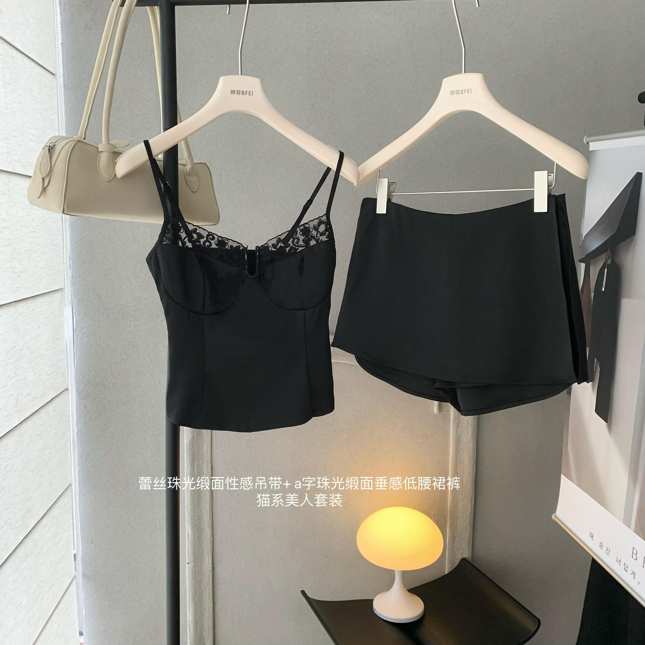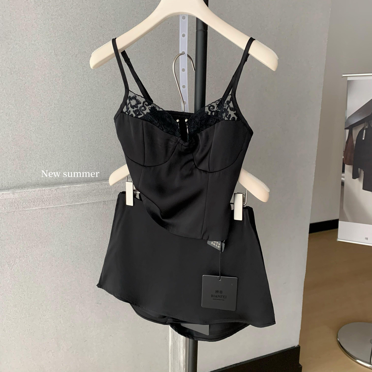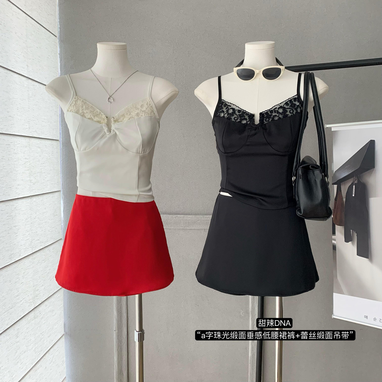 fart shop 고양이 부서 아름다움 레이스 구슬 빛 새틴 섹시함 캐미솔 봄 여름 허리 수축 맨위
