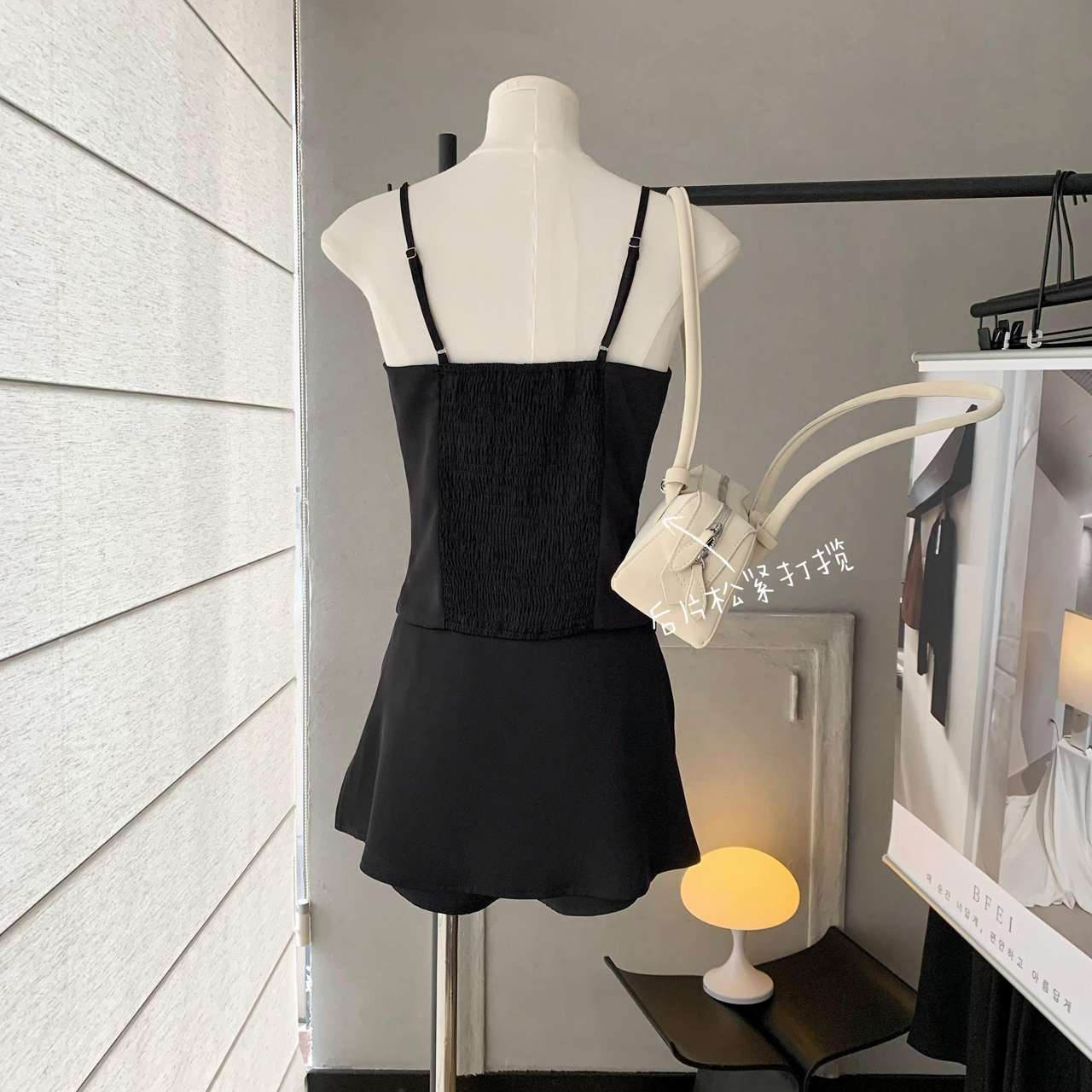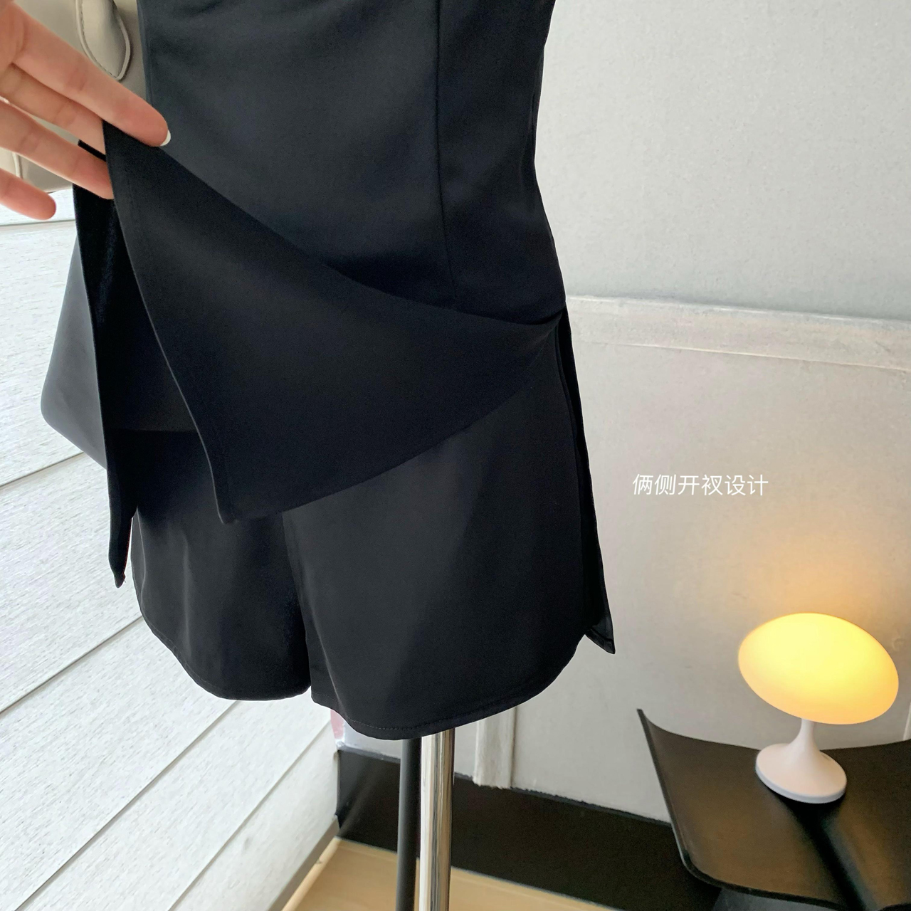 heygirl 블랙 형제 니켈 맛 outfit 프릴 민소매 셔츠 조끼 베스트 맨위 와이드 레그 팬츠 세트