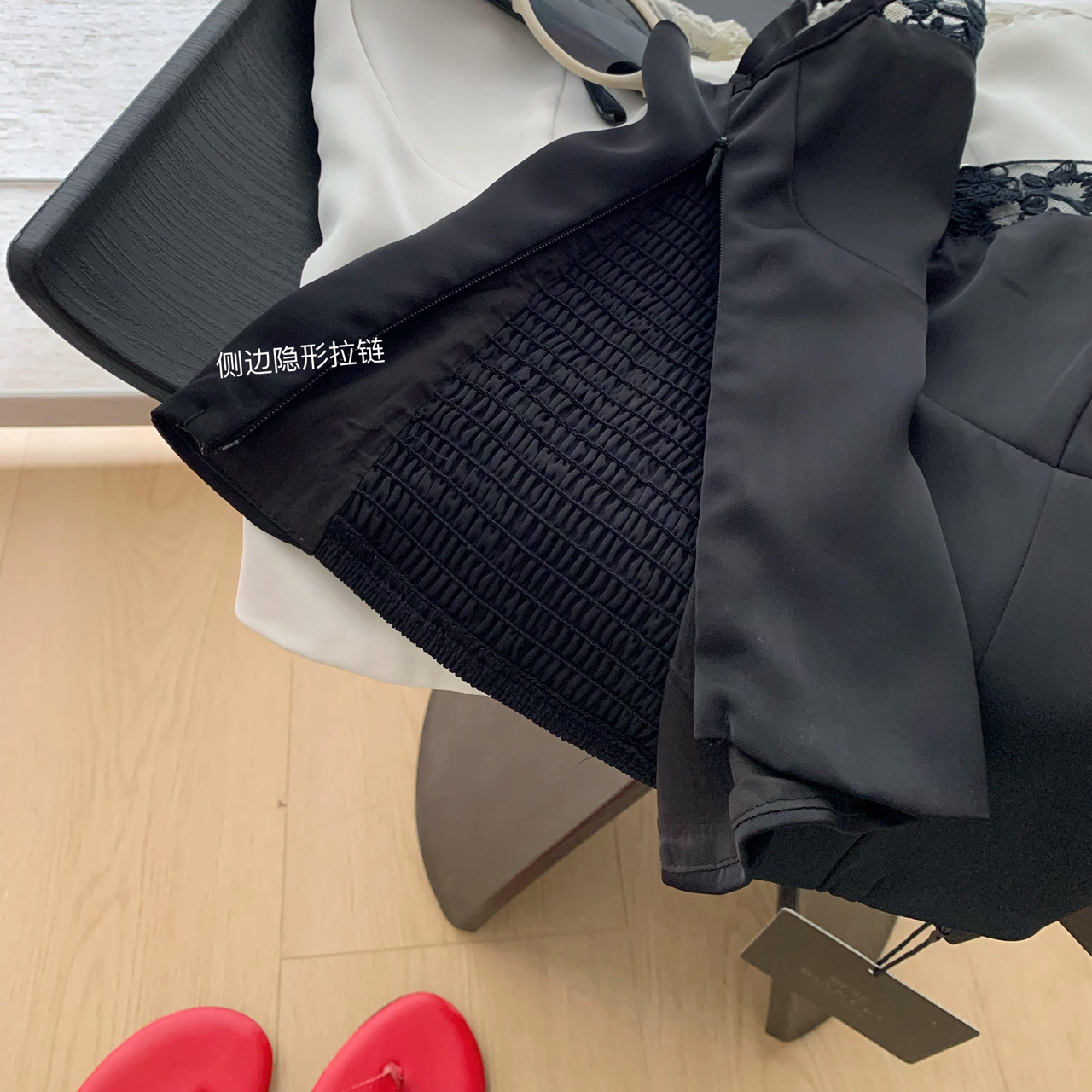 실사 오리지널 V넥 패션 슬림해 보이는 홀로우 아웃 물 용해 레이스 포지셔닝 중간 길이 드레스