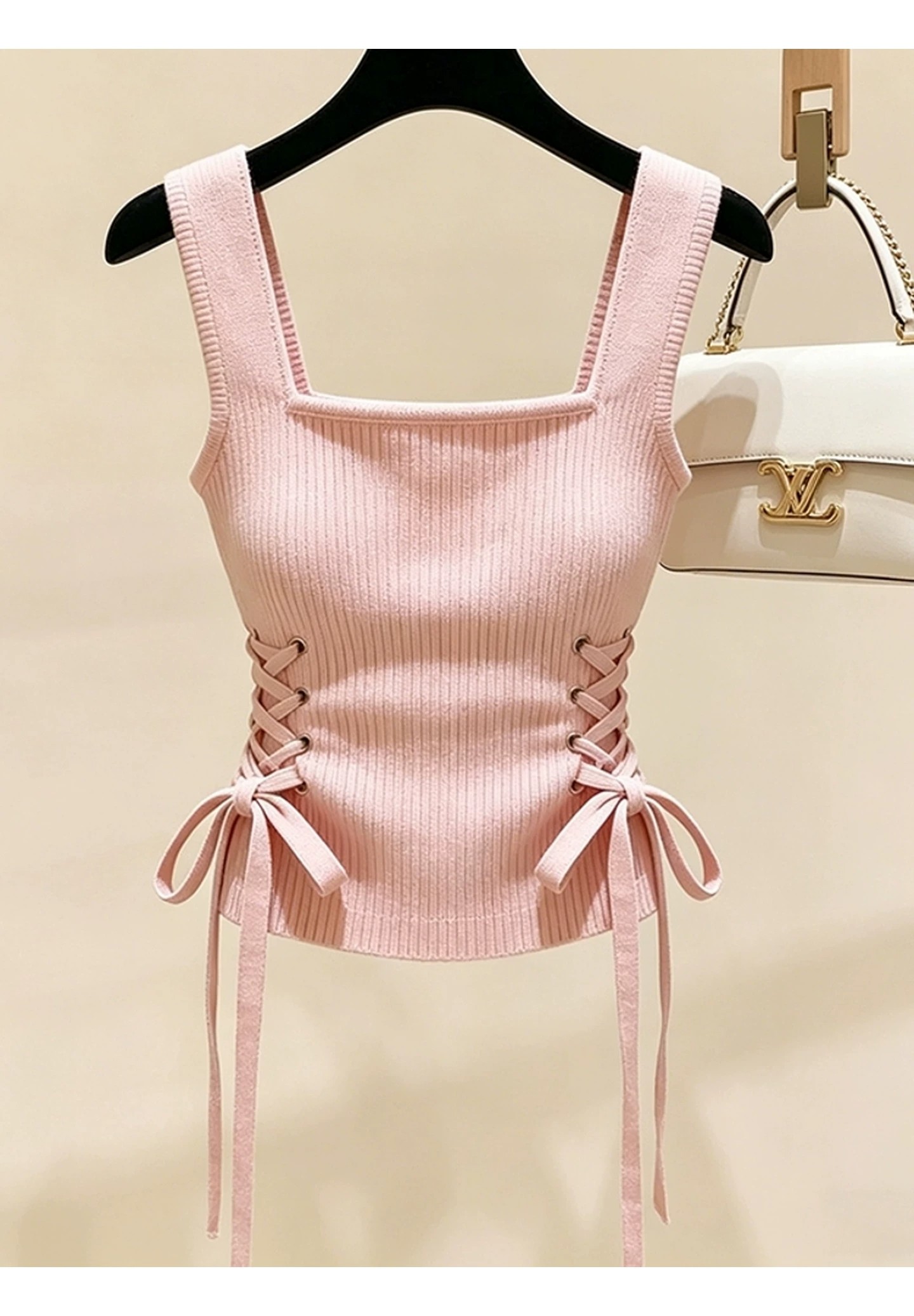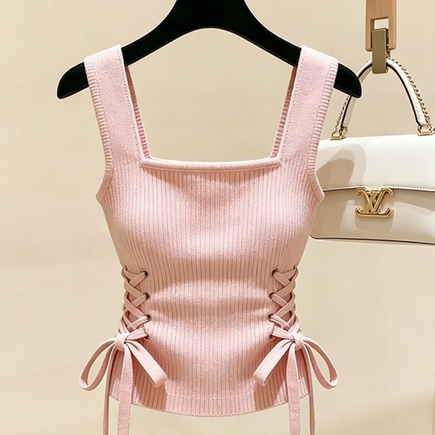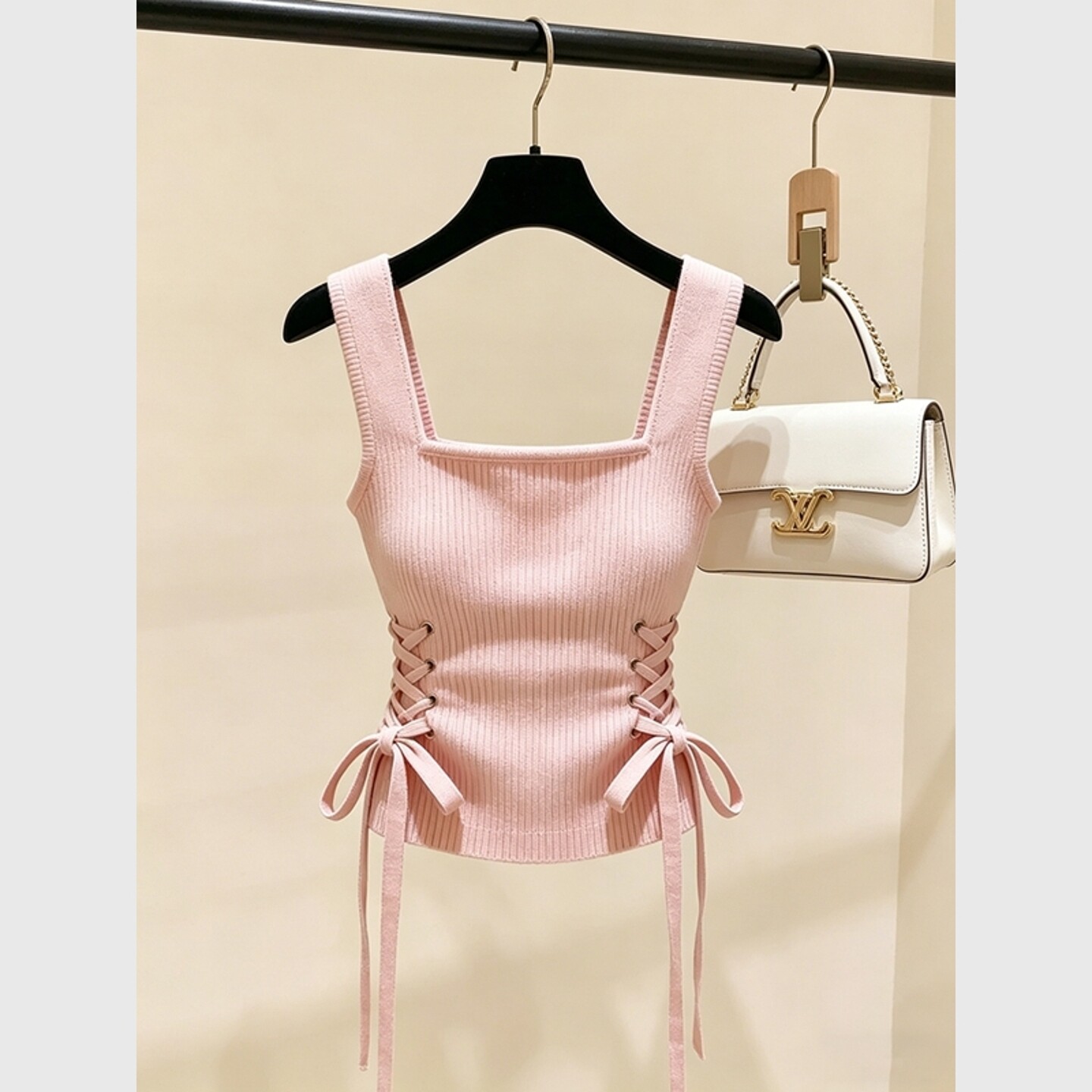 작은 대중 새로운 니트 슬립 펌프 로프 조끼 봄 몸매 가꾸기 디자인 여성 기본 셔츠 외국 가스 쇼트 스타일 민소매 맨위