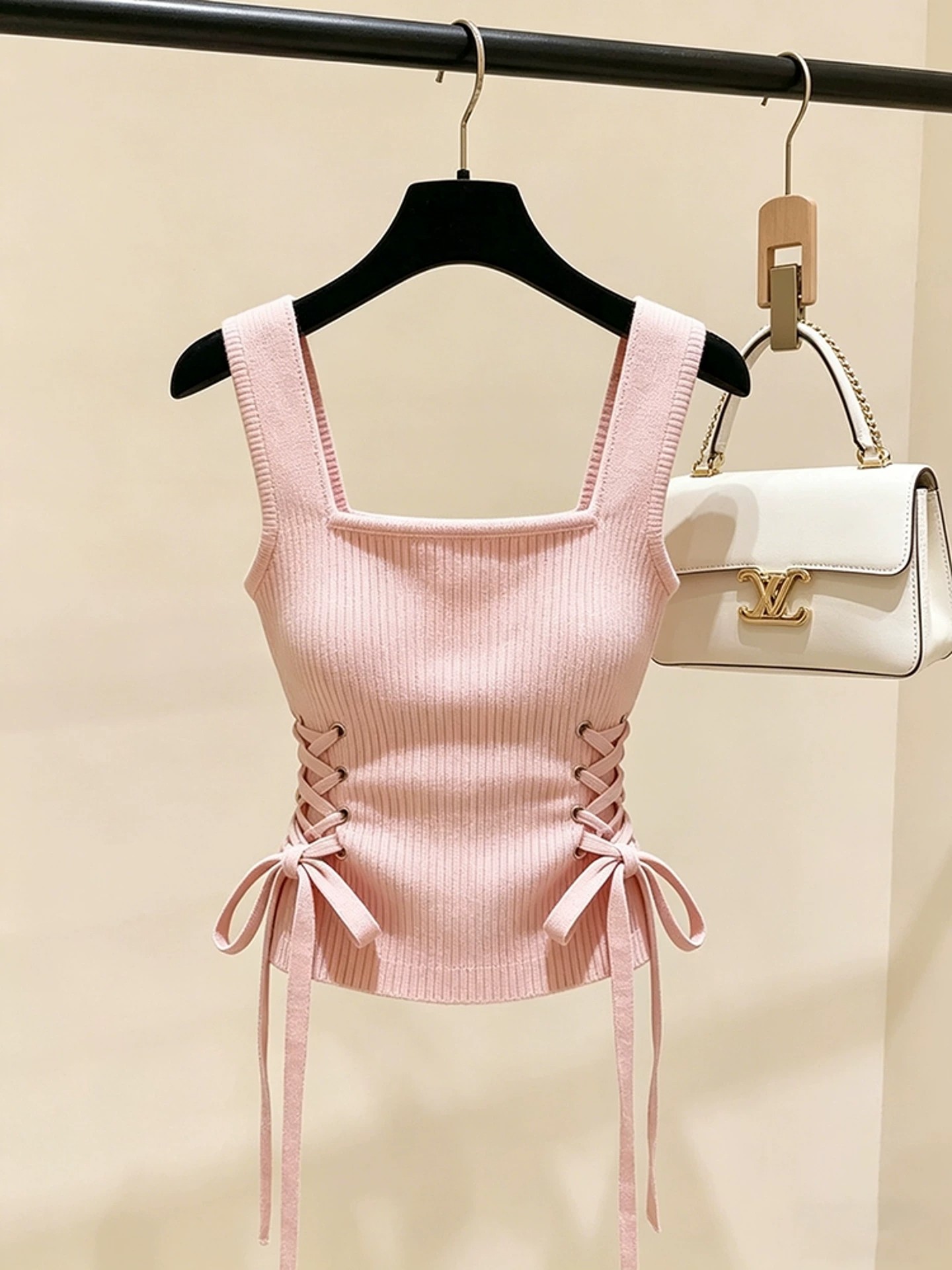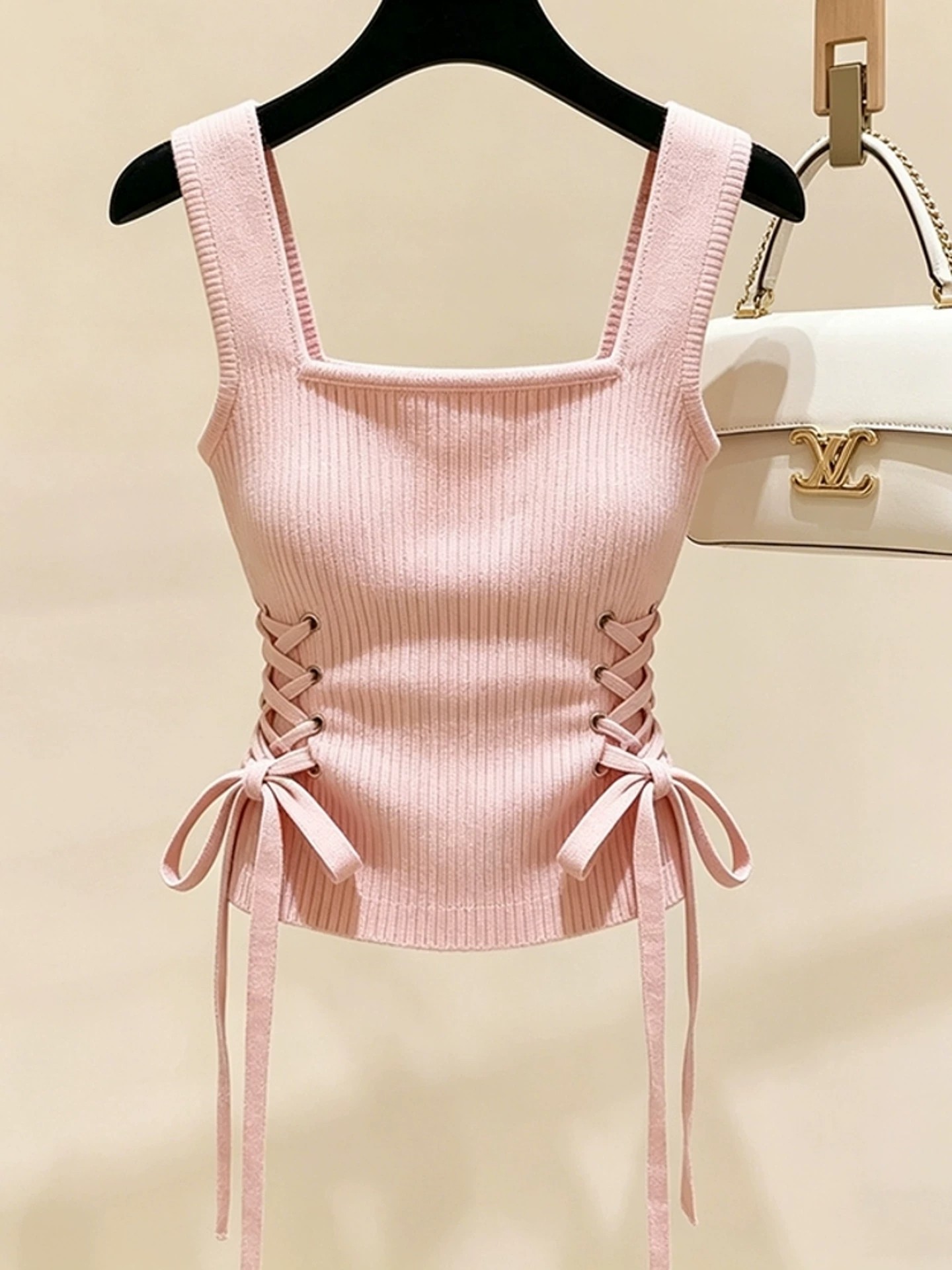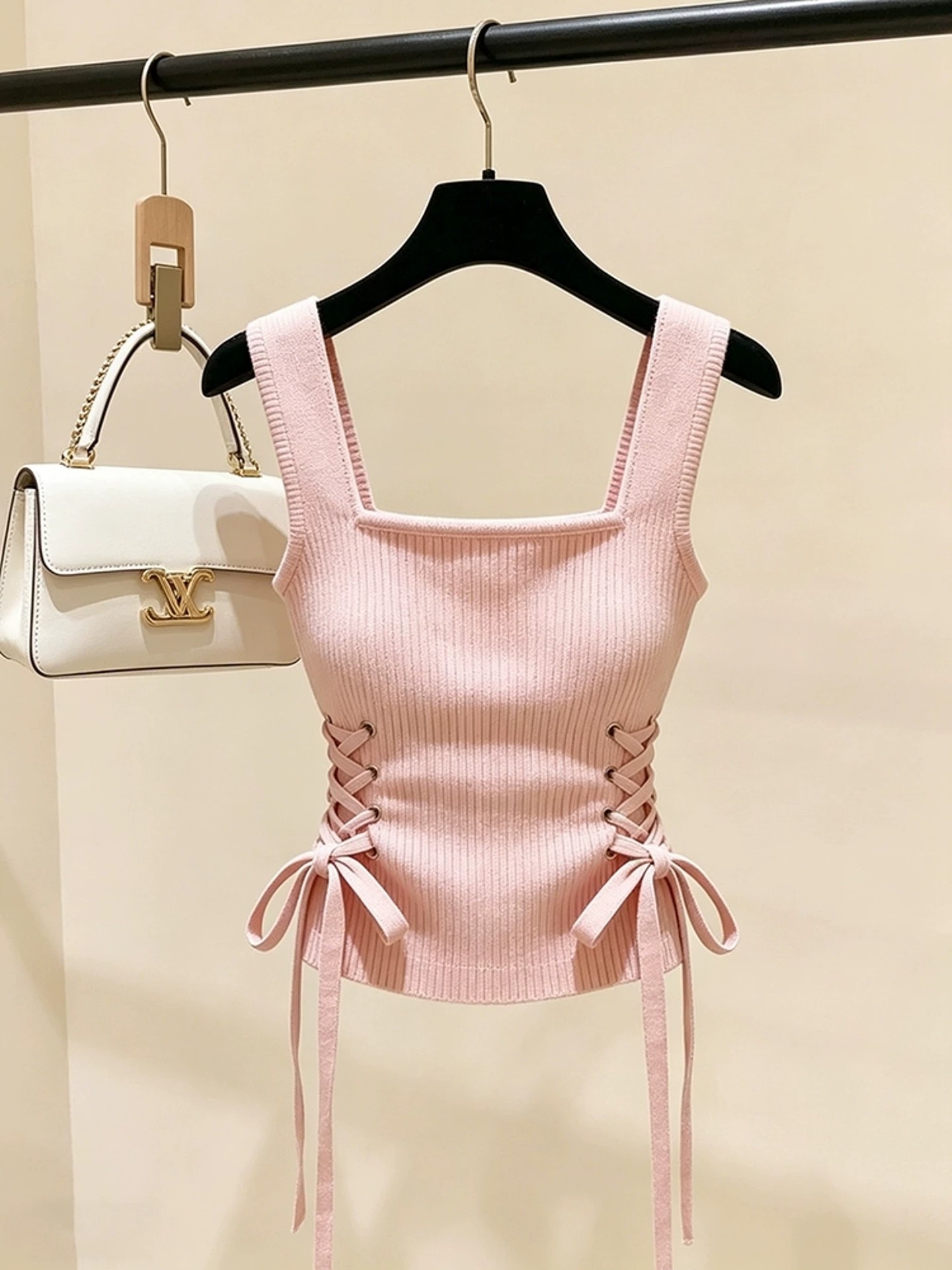 작은 대중 새로운 니트 슬립 펌프 로프 조끼 봄 몸매 가꾸기 디자인 여성 기본 셔츠 외국 가스 쇼트 스타일 민소매 맨위