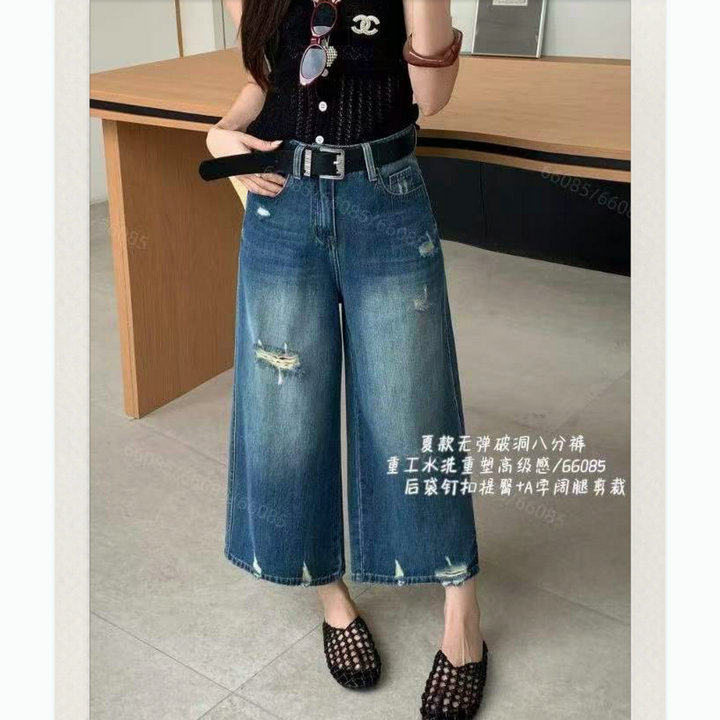 트렌디 공주 66085 찢어진 부분 7 점 와이드 레그 팬츠 2026 여름 새로운 패션 트렌디 다용도 루즈핏 슬림해 보이는 청바지