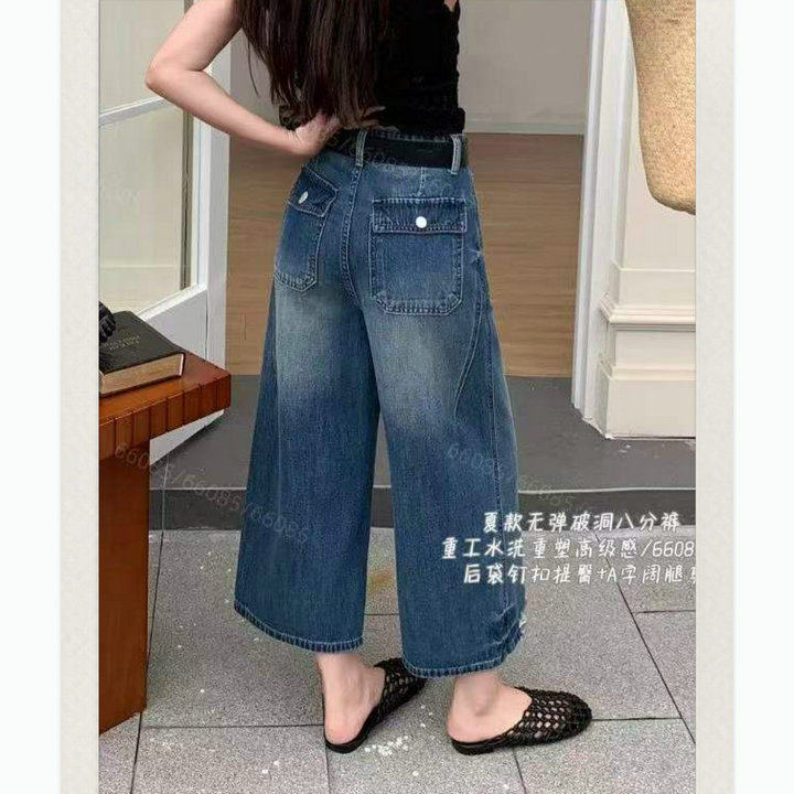 素心 블루 youmo 2026 여름 드레스 레트로 마 오래된 착용 찢어진 부분 캐주얼 8 점 와이드 레그 팬츠 청바지 여성