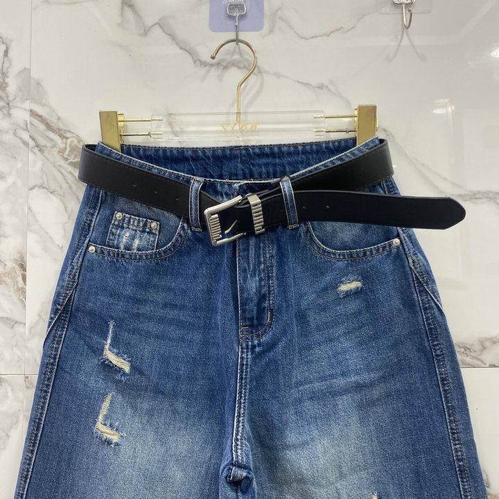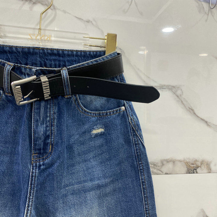 3680 여름 새로운 한국 스타일 품격 다용도 하이웨이스트 슬림해 보이는 레트로 블루 찢어진 7부 바지 캐주얼 청바지 여성