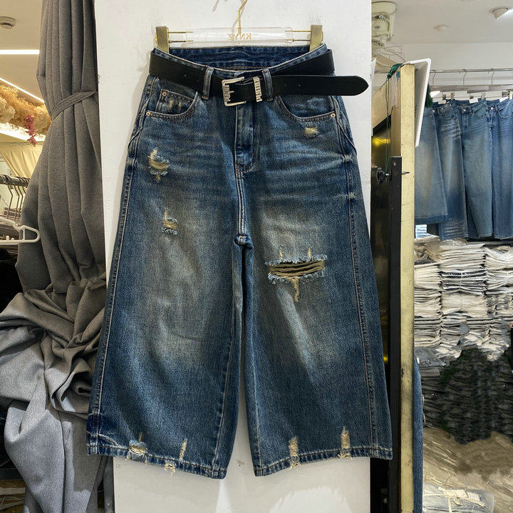 트렌디 공주 66085 찢어진 부분 7 점 와이드 레그 팬츠 2026 여름 새로운 패션 트렌디 다용도 루즈핏 슬림해 보이는 청바지