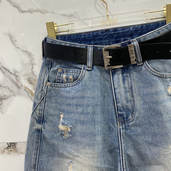 3680 여름 새로운 한국 스타일 품격 다용도 하이웨이스트 슬림해 보이는 레트로 블루 찢어진 7부 바지 캐주얼 청바지 여성