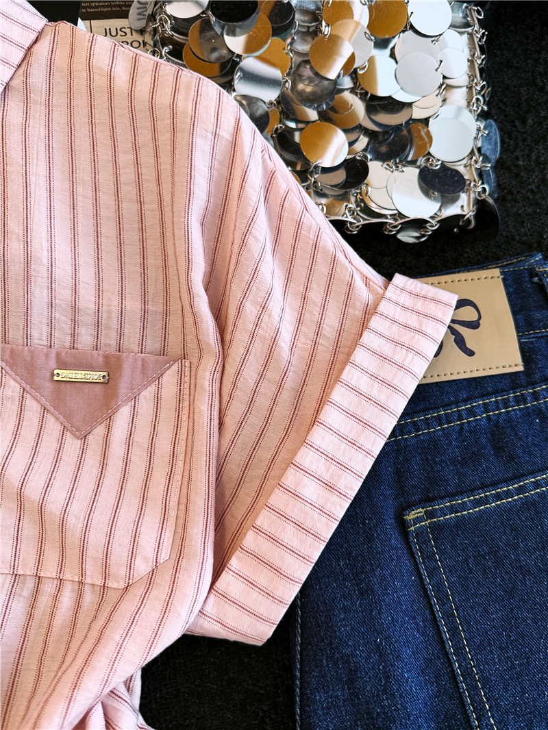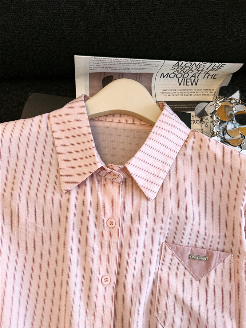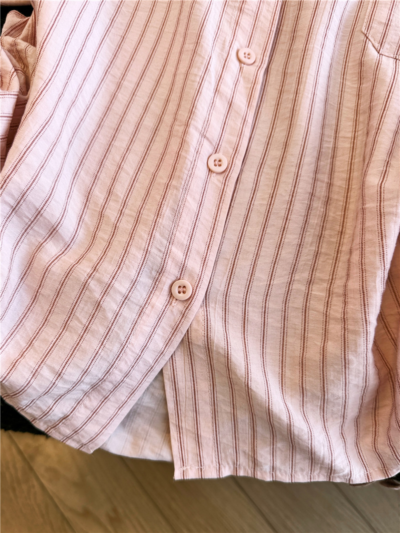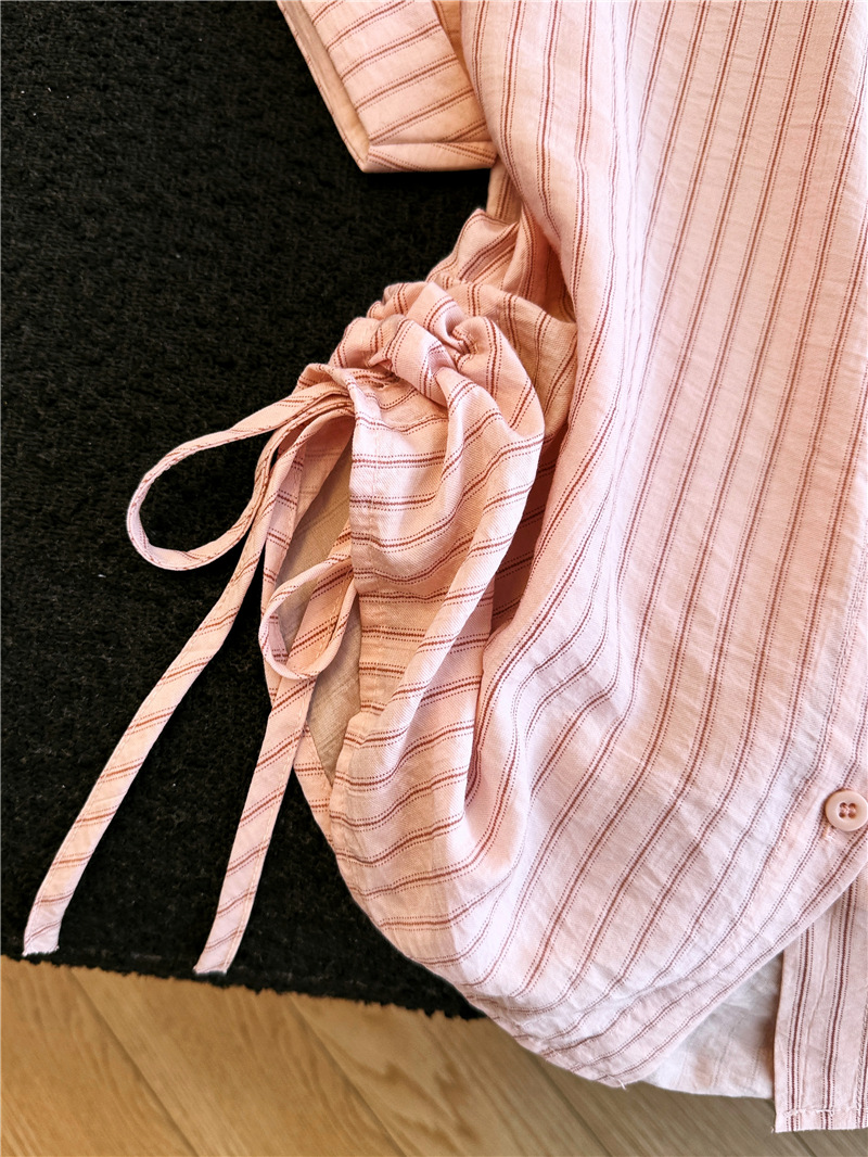 달콤함 일본식 스트라이프 나비 매듭 여성 셔츠 2026 여름 새로운 아름다운 고유 한 Chic 루즈핏 다용도 맨위
