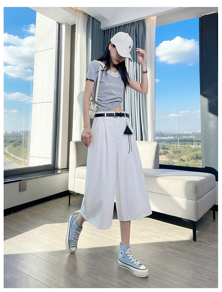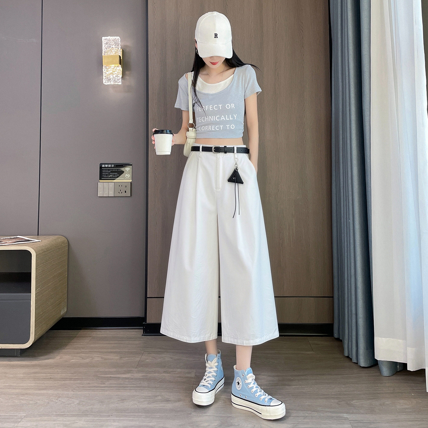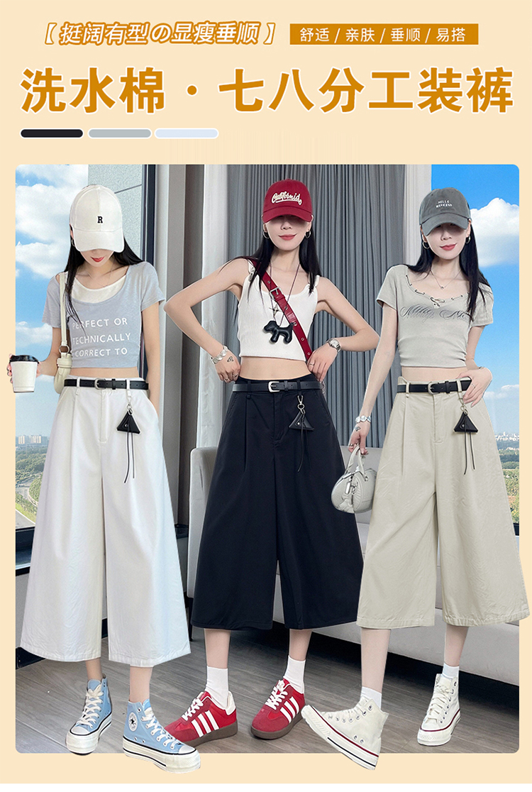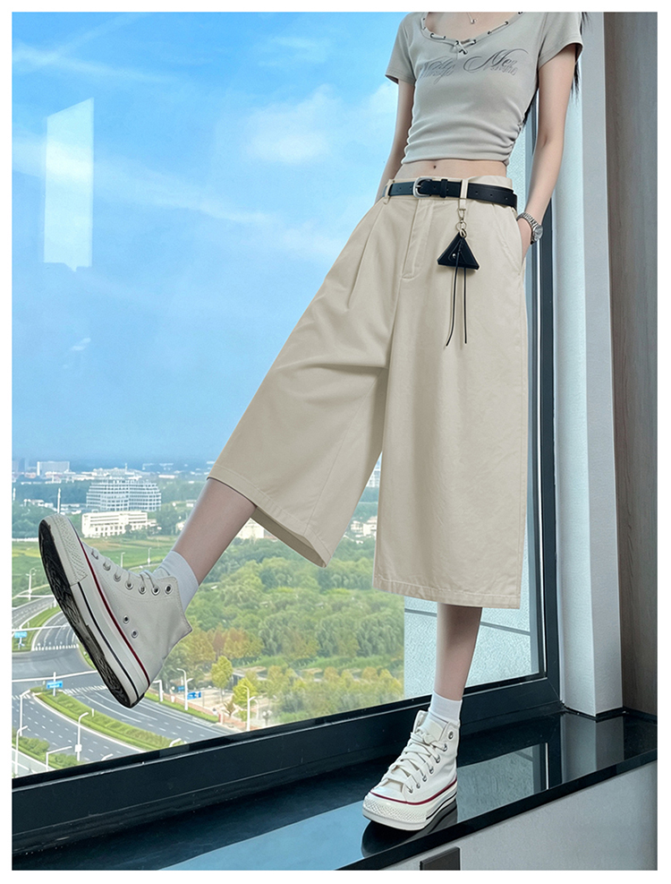 실사 여름 새로운 세븐 8 점 와이드 레깅스 바지 여름 작은 키 슬림해 보이는 다용도 도루 센스 루즈핏 스트레이트 팬츠