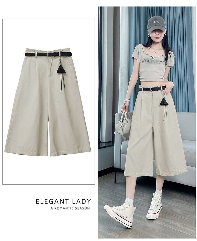 2026 여름 워시 물 면 캐주얼 바지 루즈핏 슬림해 보이는 8 점 바지 패션 다용도 여성 모통이 칼 바지 벨트 포함