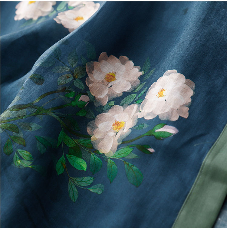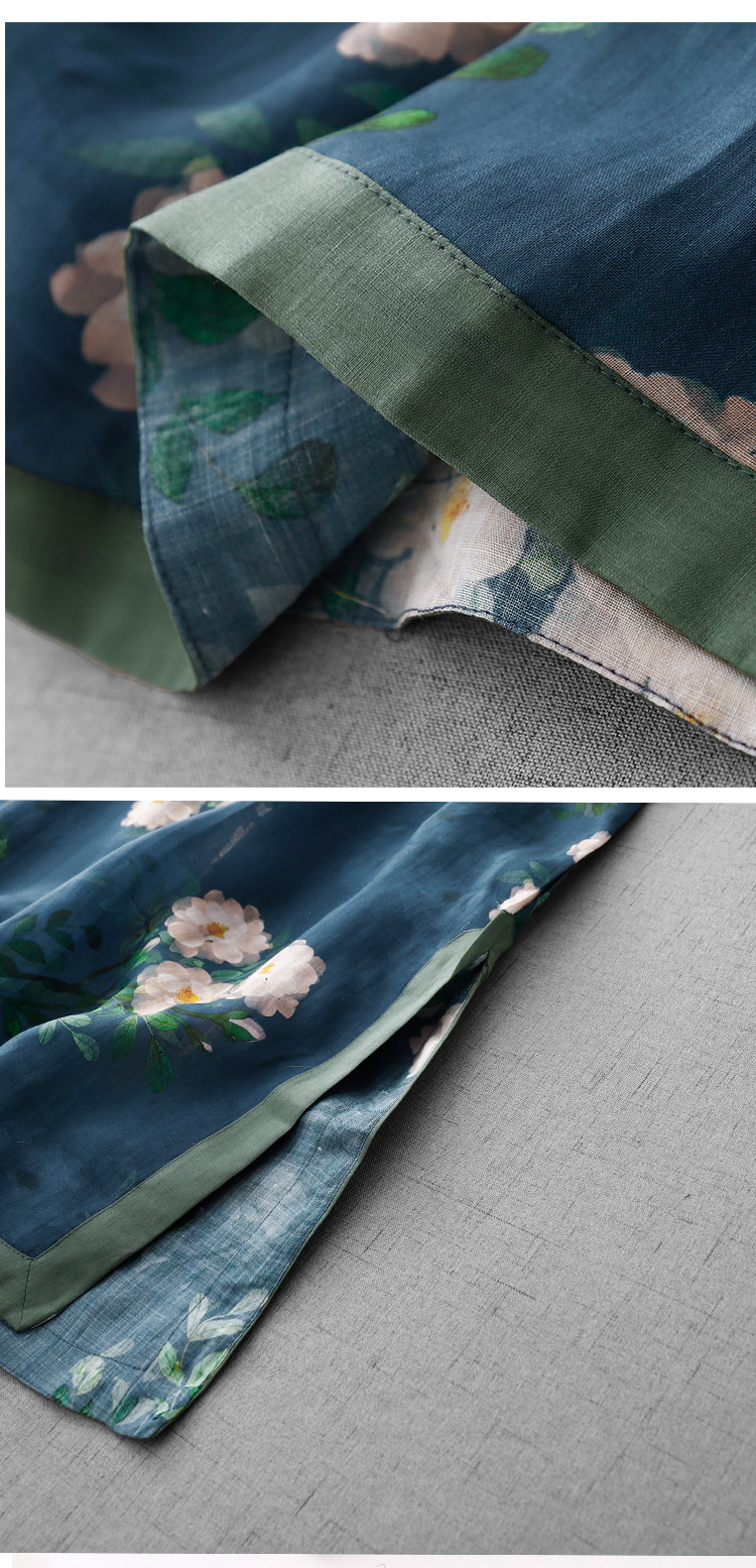 3927 실사 문예 좋은 제직 면 꽃무늬 신제품 테두리 작은 주머니 7부 소매 루즈핏 여름 전원 바람 롱 스커트
