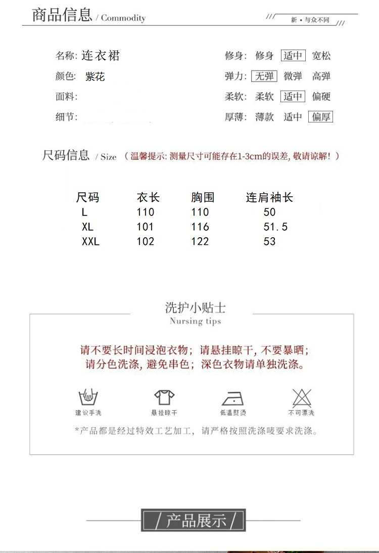 3928 실사 순면 보라색 꽃무늬 꽃무늬 드레스 가을 어깨 7부 소매 하이웨이스트 루즈핏 큰 진자 캐주얼 롱 스커트