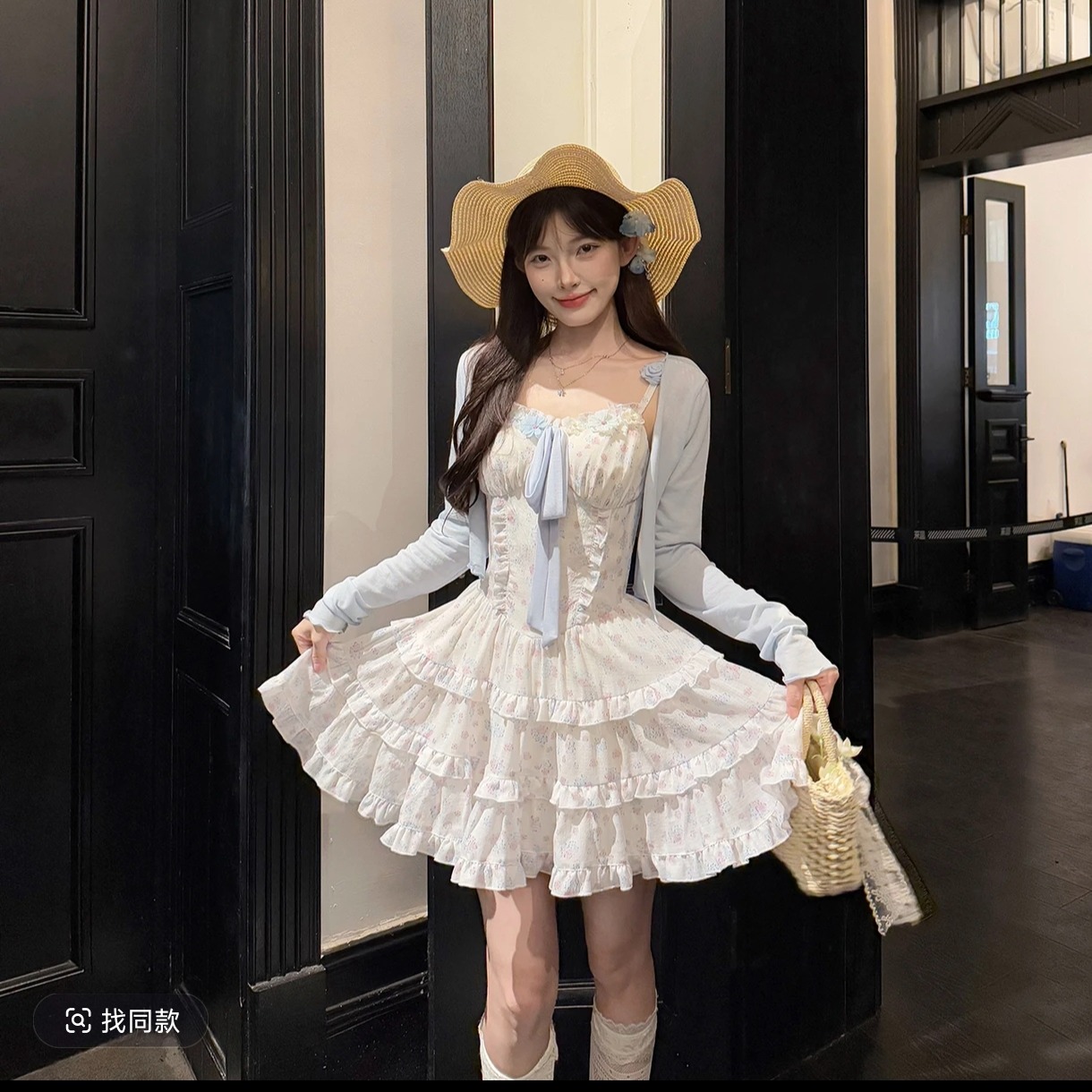 새로운 꽃다발 일반 사랑 소녀 센스 나비 매듭 허리 수축 슬림해 보이는 명문 여성 바람 프랑스식 패션 세트