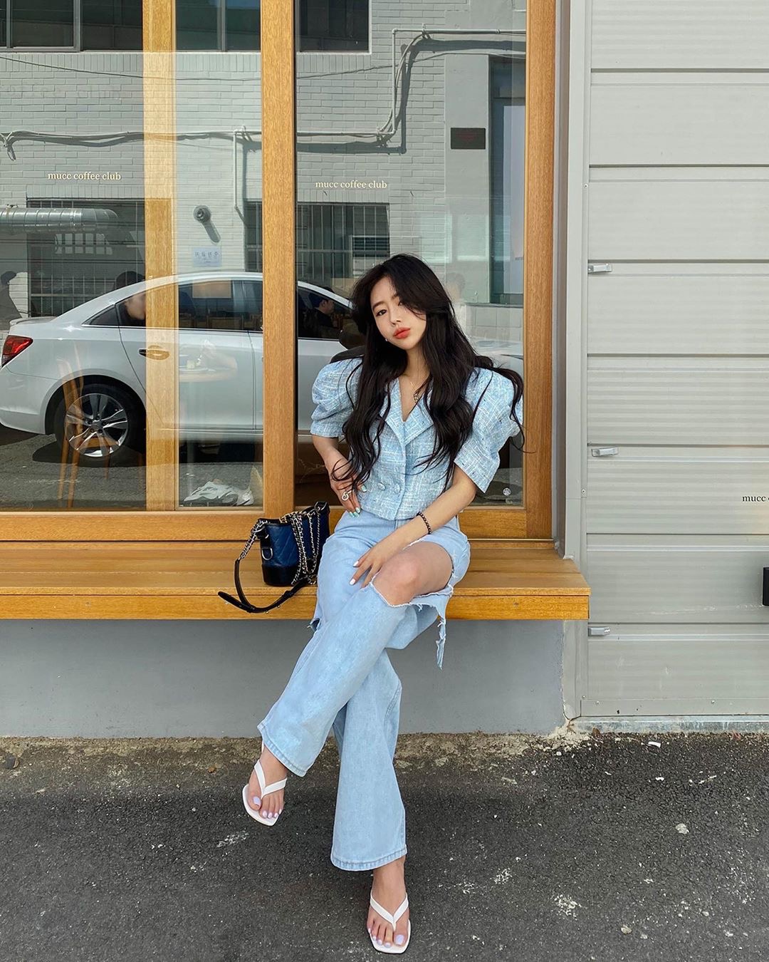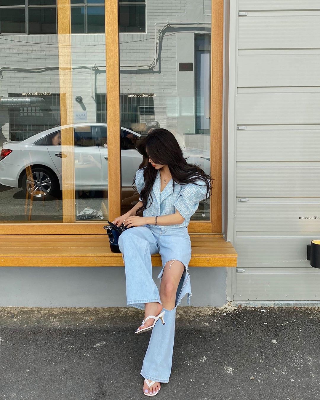 프릴 보트넥 오프숄더 거품 소매 맨위 세트 밴딩 하이웨이스트 슬림해 보이는 넓은 다리가 짧다. 바지 투피스 세트