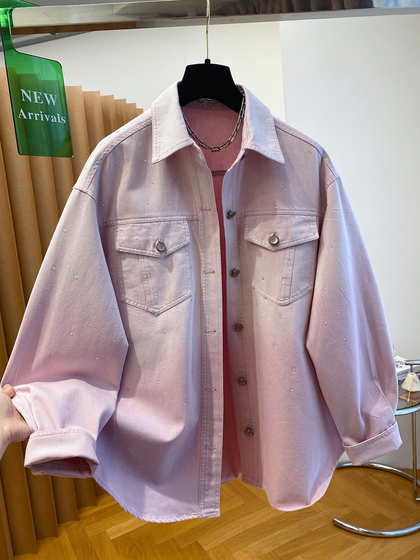 2026 봄 새로운 한국 스타일 레트로 비즈 박기 핫픽스 쇼트 스타일 데님 여성 코트 작은 키 다용도 슬림해 보이는 재킷