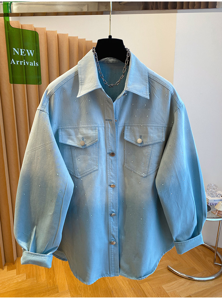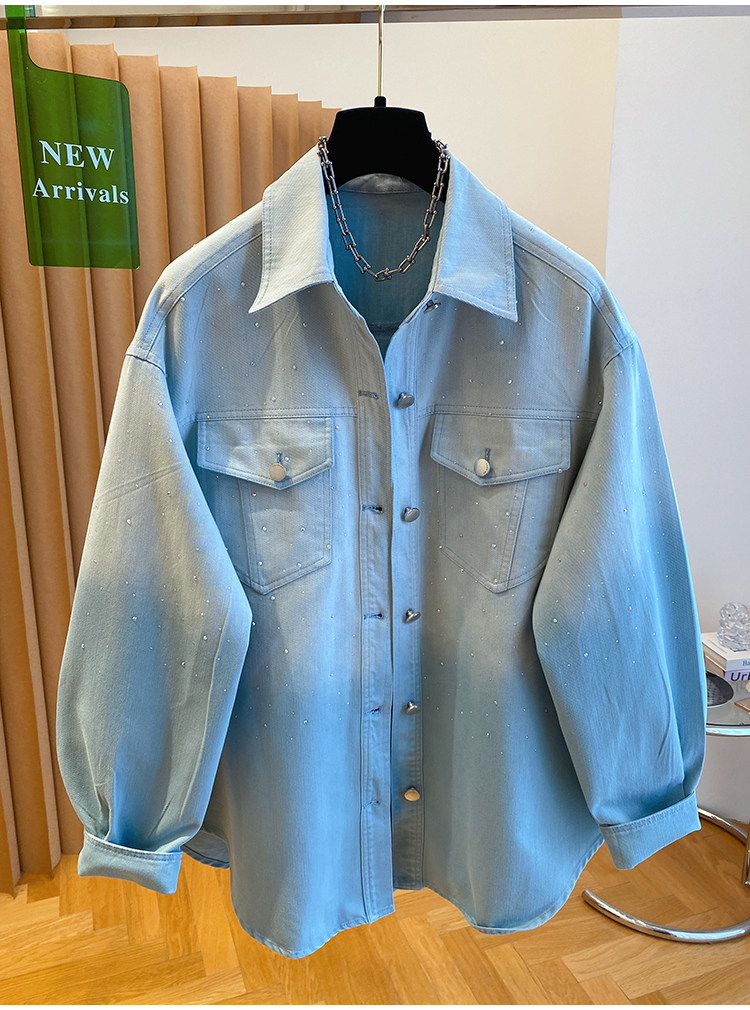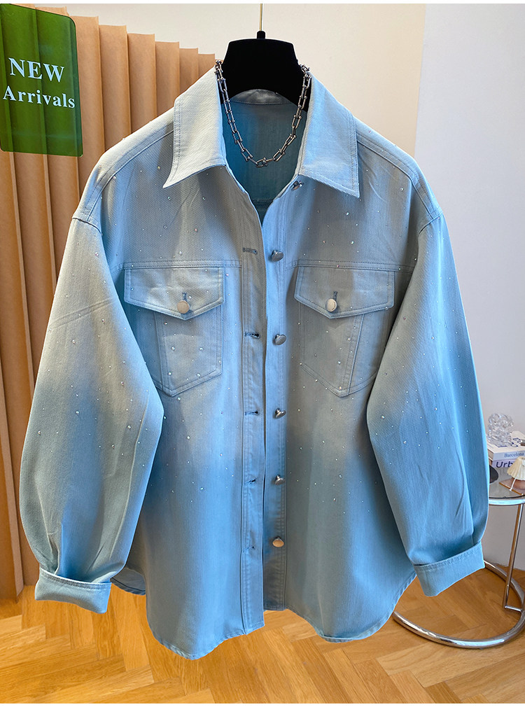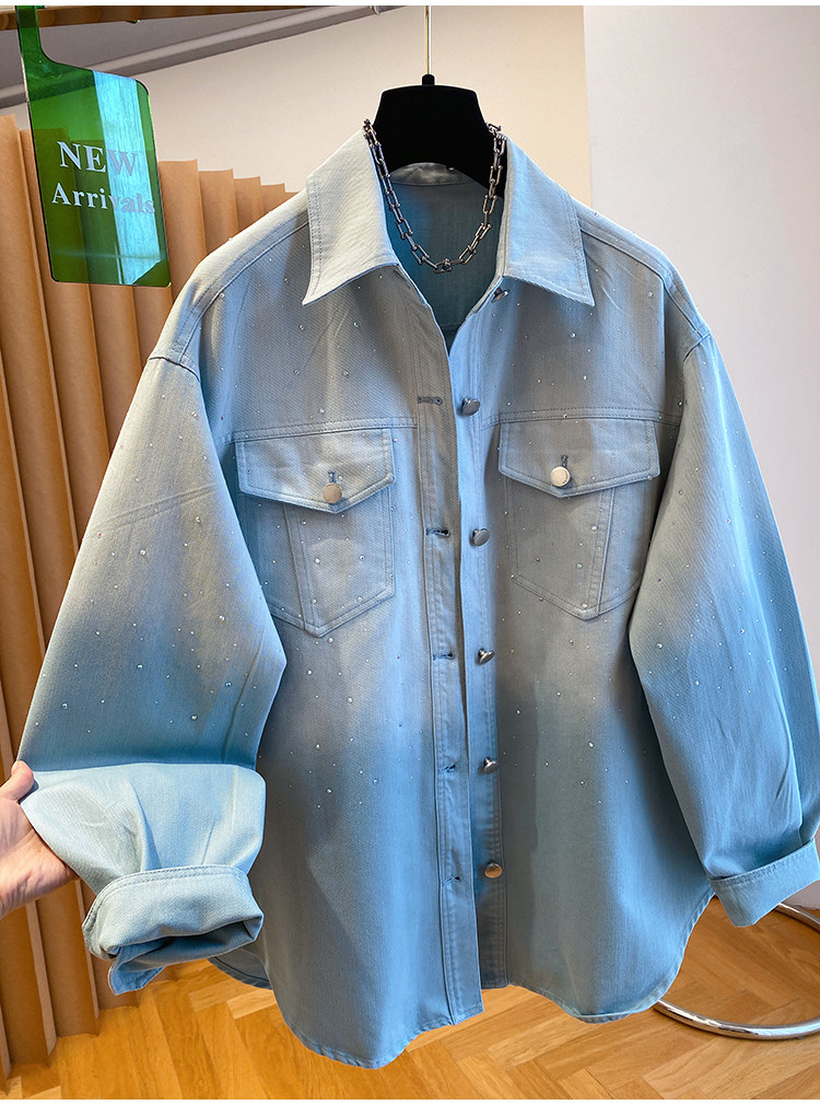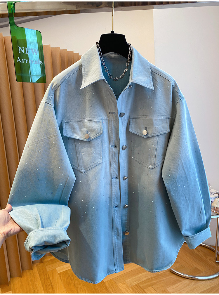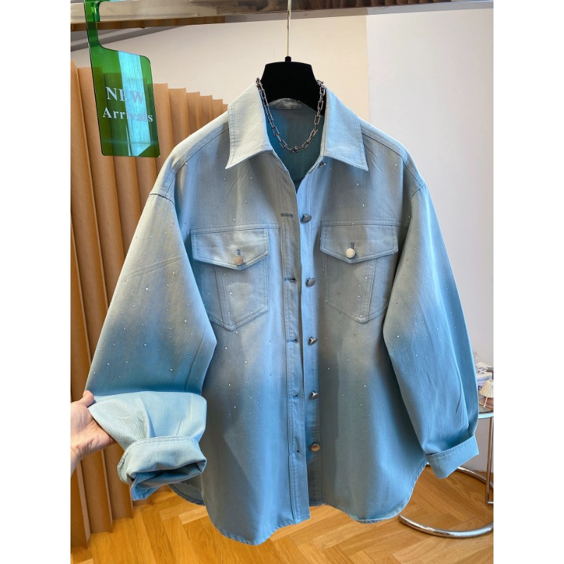 높음 세트 유럽 상품 빛나는 별 핫픽스 데님 셔츠 여성 긴 소매 2026 봄 새로운 캐주얼 다용도 맨위