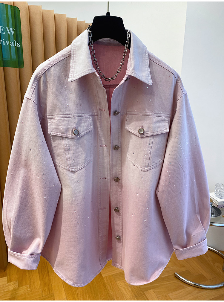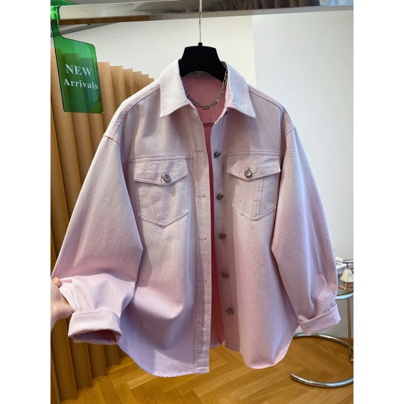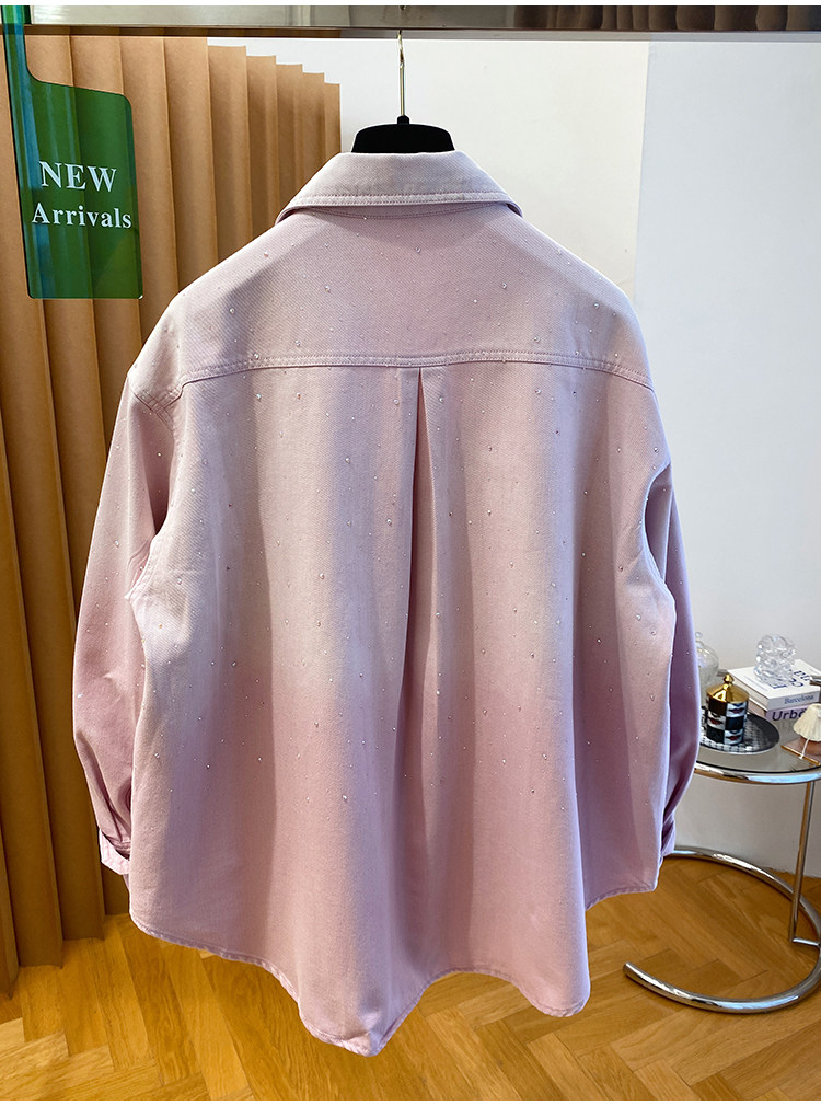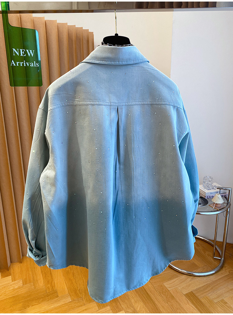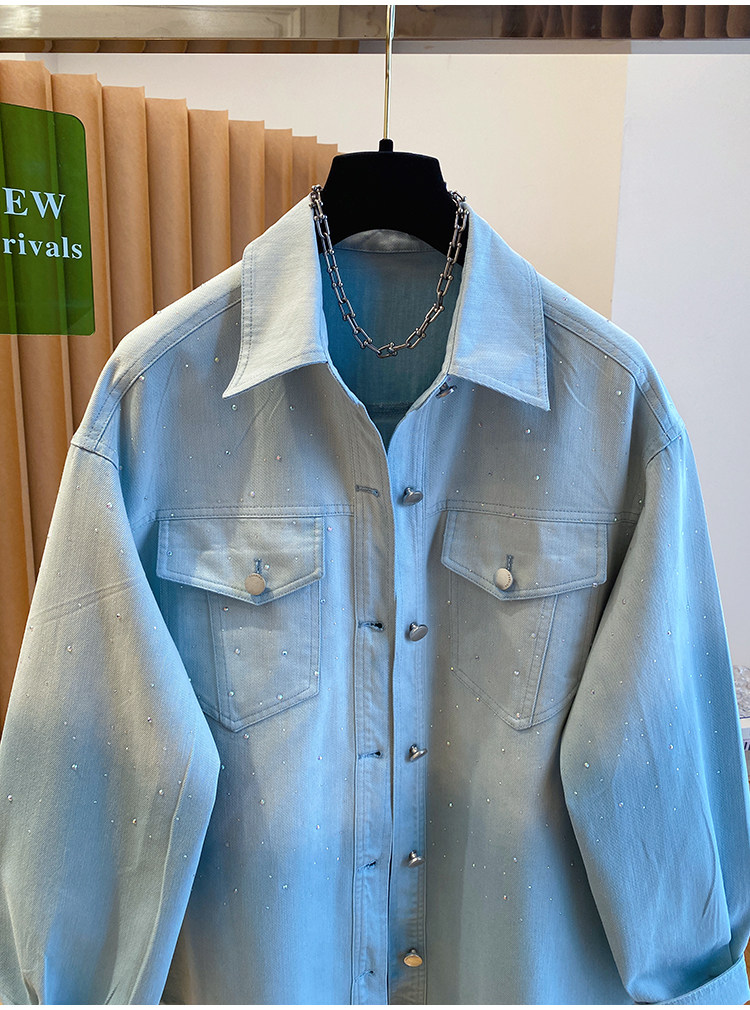 높음 세트 유럽 상품 빛나는 별 핫픽스 데님 셔츠 여성 긴 소매 2026 봄 새로운 캐주얼 다용도 맨위