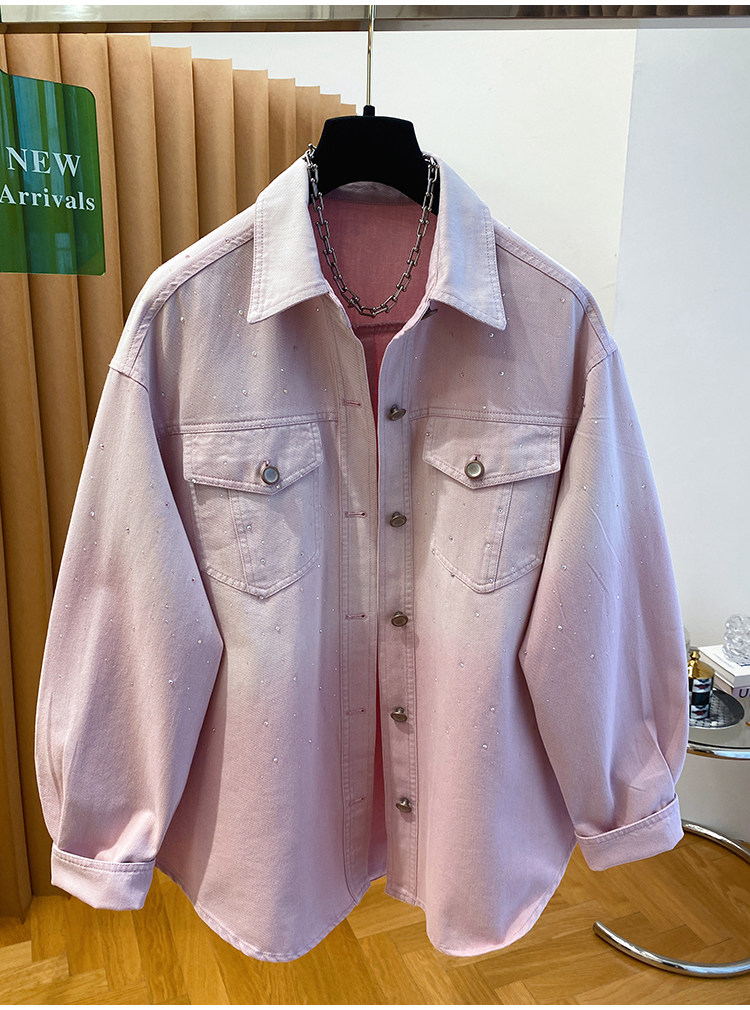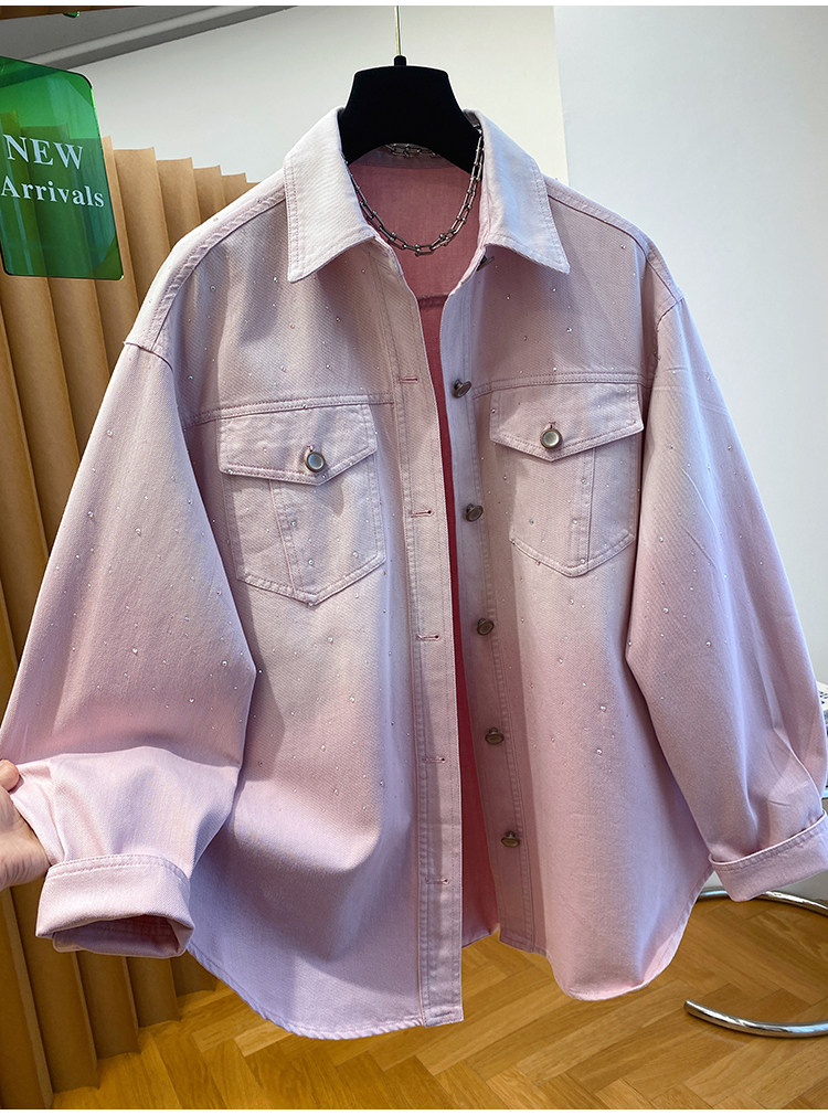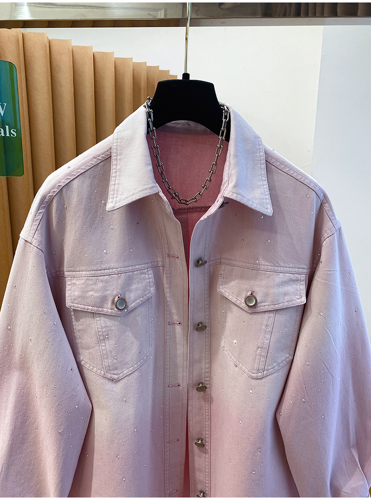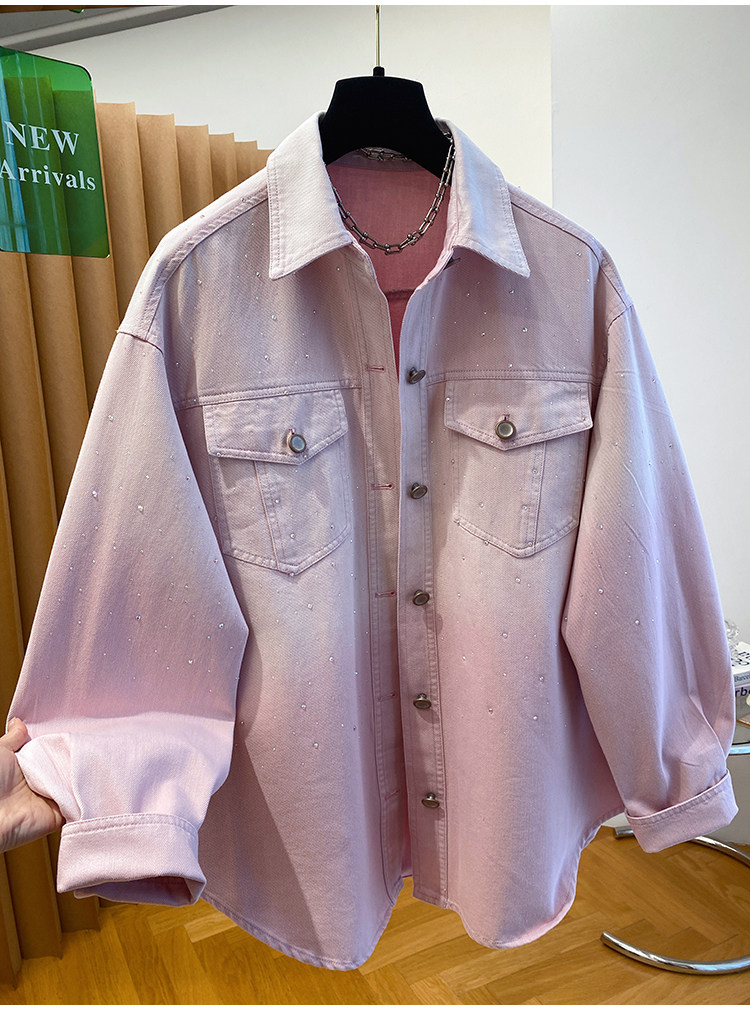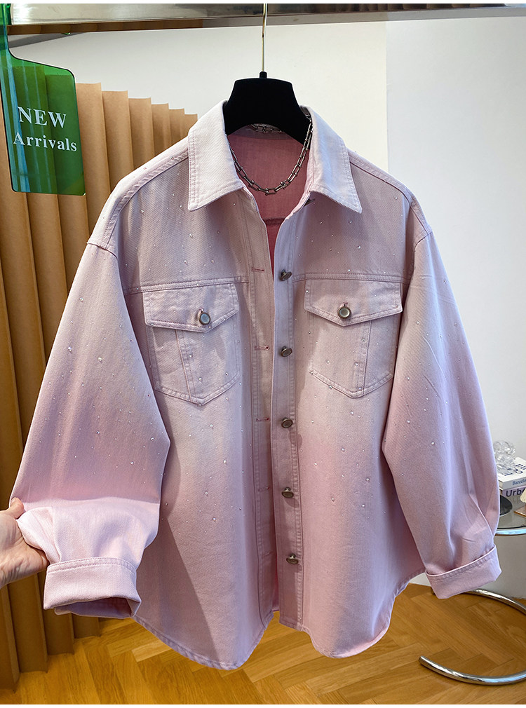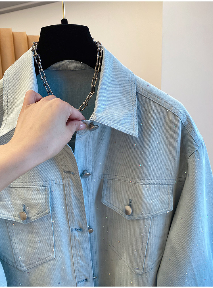 높음 세트 유럽 상품 빛나는 별 핫픽스 데님 셔츠 여성 긴 소매 2026 봄 새로운 캐주얼 다용도 맨위