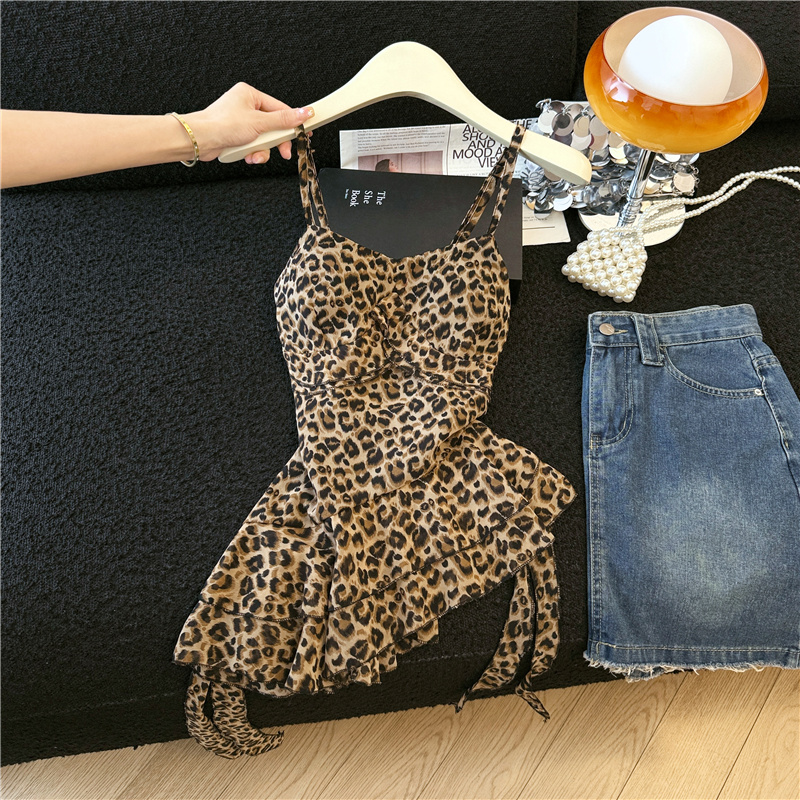 프랑스식 레트로 품격 순수한 욕망 바람 2026 핫걸 섹시함 불규칙 레오파드 무늬 슬립 맨위 여성 여름
