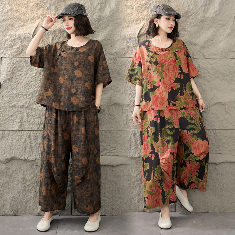 2026 여름 워시 물 더블 실 아기 면 린넨 면 새로운 빅 사이즈 새로운 중식 국풍 슬림해 보이는 투피스 세트 세트