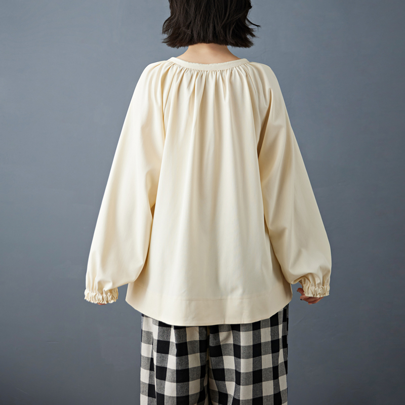실사 2026 봄 새로운 맨위 루즈핏 디자인 센스 단색 다용도 목이버섯 레이스 삽입 어깨 소매 여성 셔츠