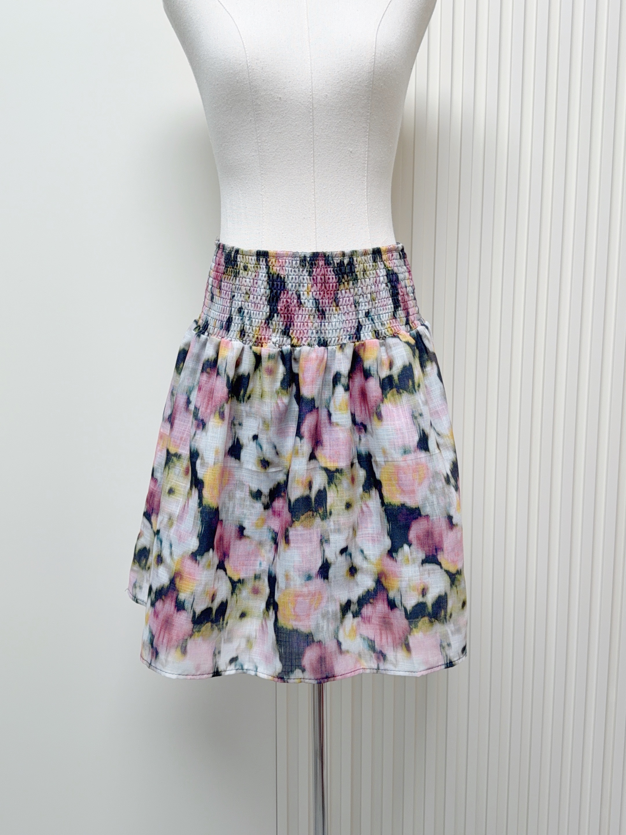 봄 와일드 아름다움 가볍게 프랑스식 꽃무늬 도트 무늬 반신 스커트 이중층 비스듬한 자르다 분위기 센스 한 마디 허리 수축 치마