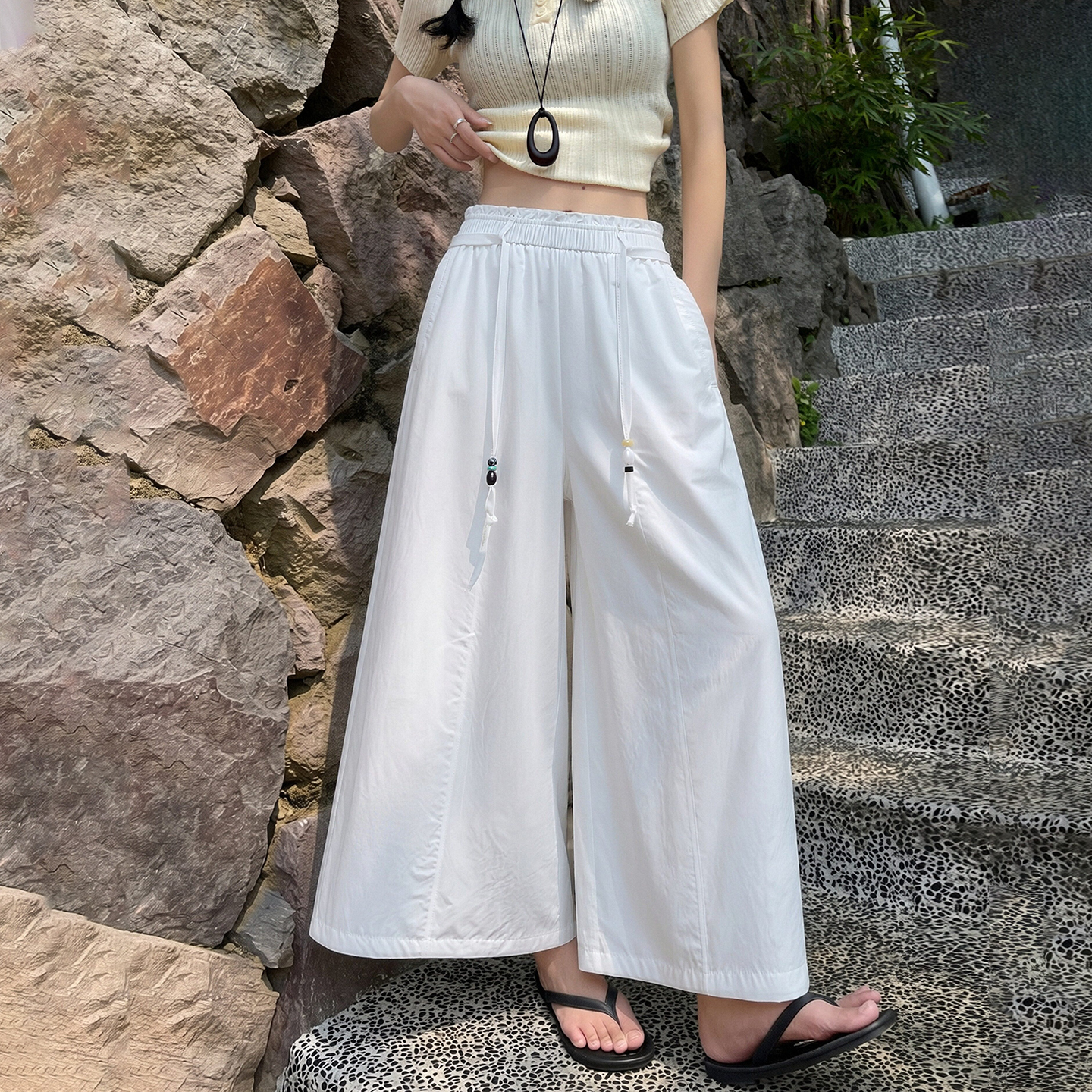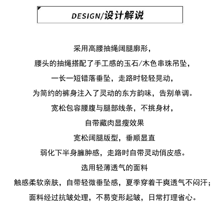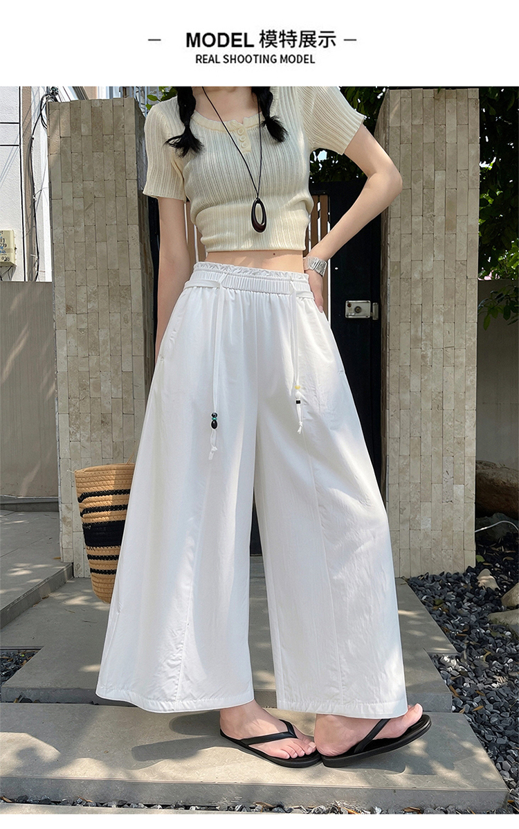 얇고 가벼운 호흡 센스 큰 진자 금액 펌프 로프 핀치 Pleat 넓은 다리 치마바지 캐주얼 바지