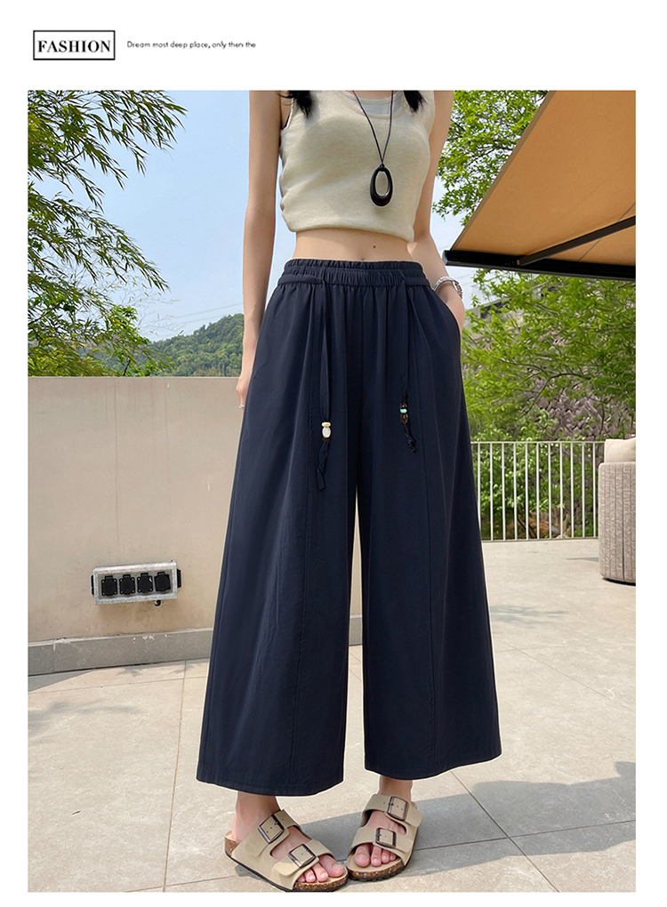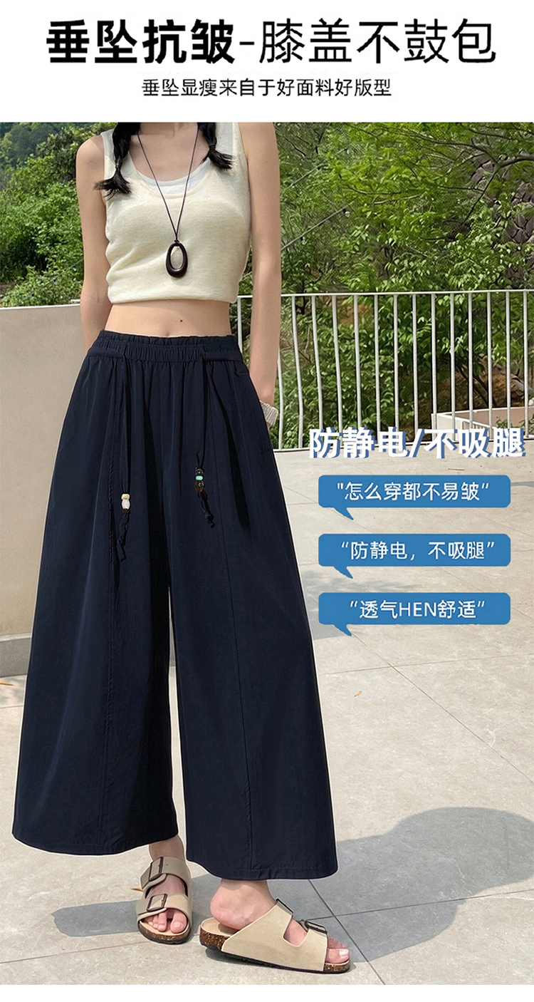 실사 2026 여름 얼음 실크 속도 건조한 캐주얼 와이드 레그 팬츠 패션 다용도 루즈핏 슬림해 보이는 9부 바지 여성