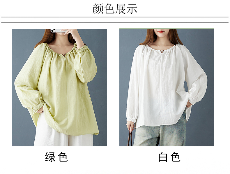 실사 2026 봄 새로운 빅 사이즈 루즈핏 캐주얼 목이버섯 레이스 소매 V넥 긴팔 셔츠 여성 의류 맨위