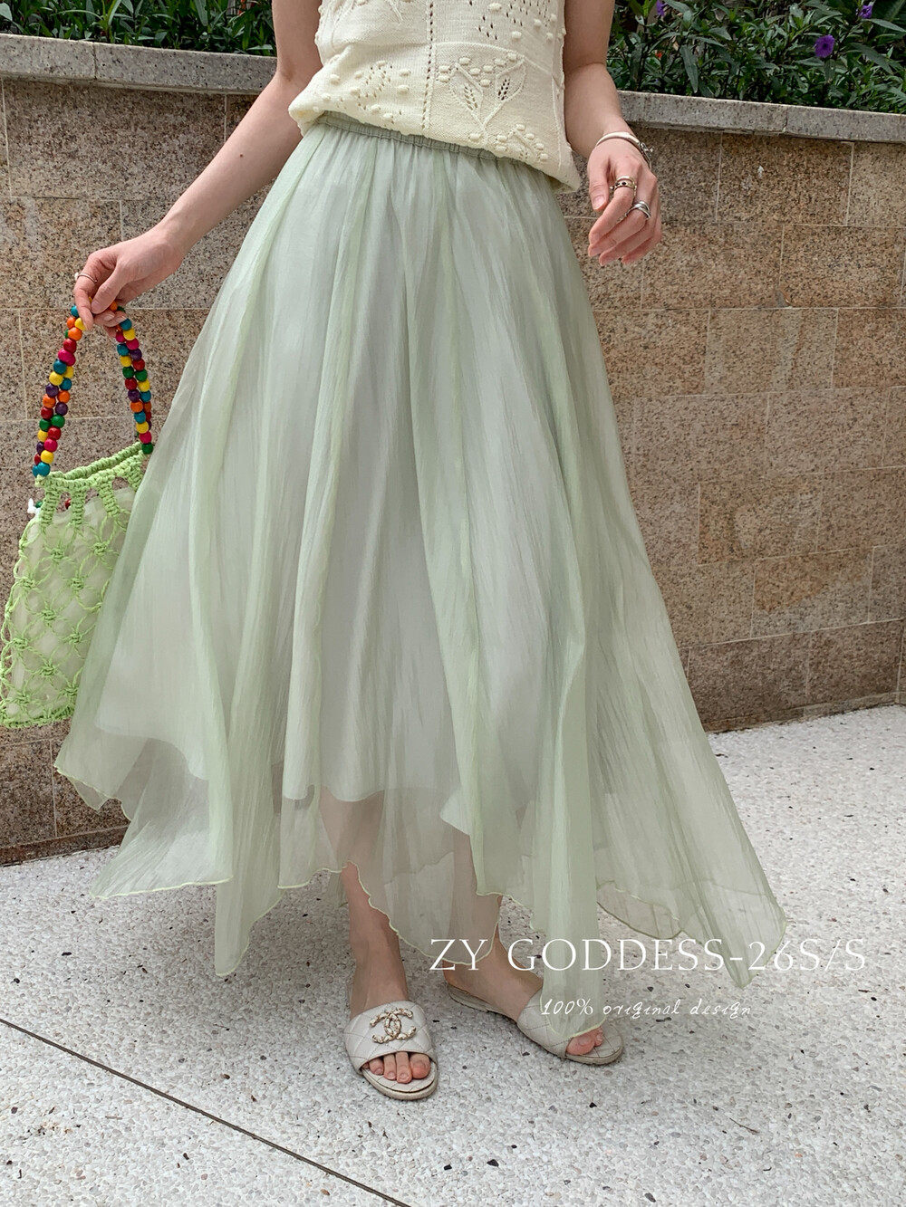 zy 부드러운 바람 깃발 센스 반신 스커트 여성 2026 봄 여름 하이웨이스트 슬림해 보이는 불규칙 큰 진자 거즈 스커트 요정 치마