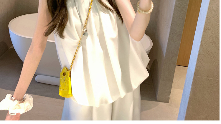 지금 임산부 프릴 민소매 셔츠 조끼 베스트 맨위 코디 캐주얼 와이드 레그 팬츠 두 조각 여성 세트