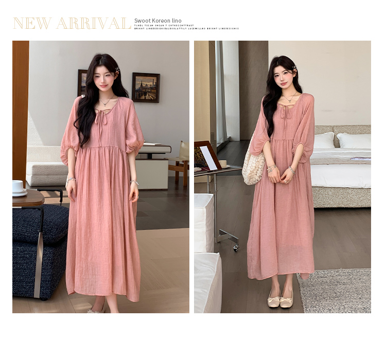 2026 여름 미니멀리즘 클래식 캐주얼 패션 몸매 가꾸기 품격 슬림해 보이는 임산부 반팔 드레스 빅 사이즈