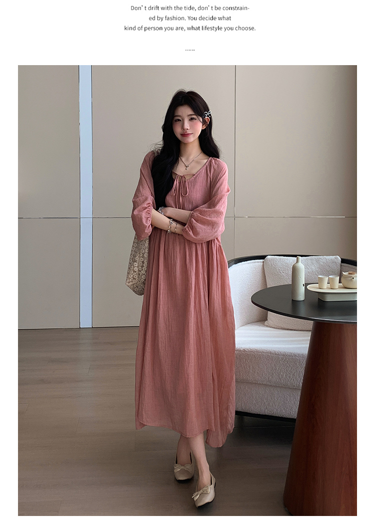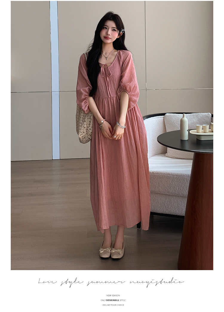 실사 지금 2026 여름 라미 드레스 루즈핏 우아한 단색 큰 진자 롱 스커트 소매 얇은 스타일 인형 치마
