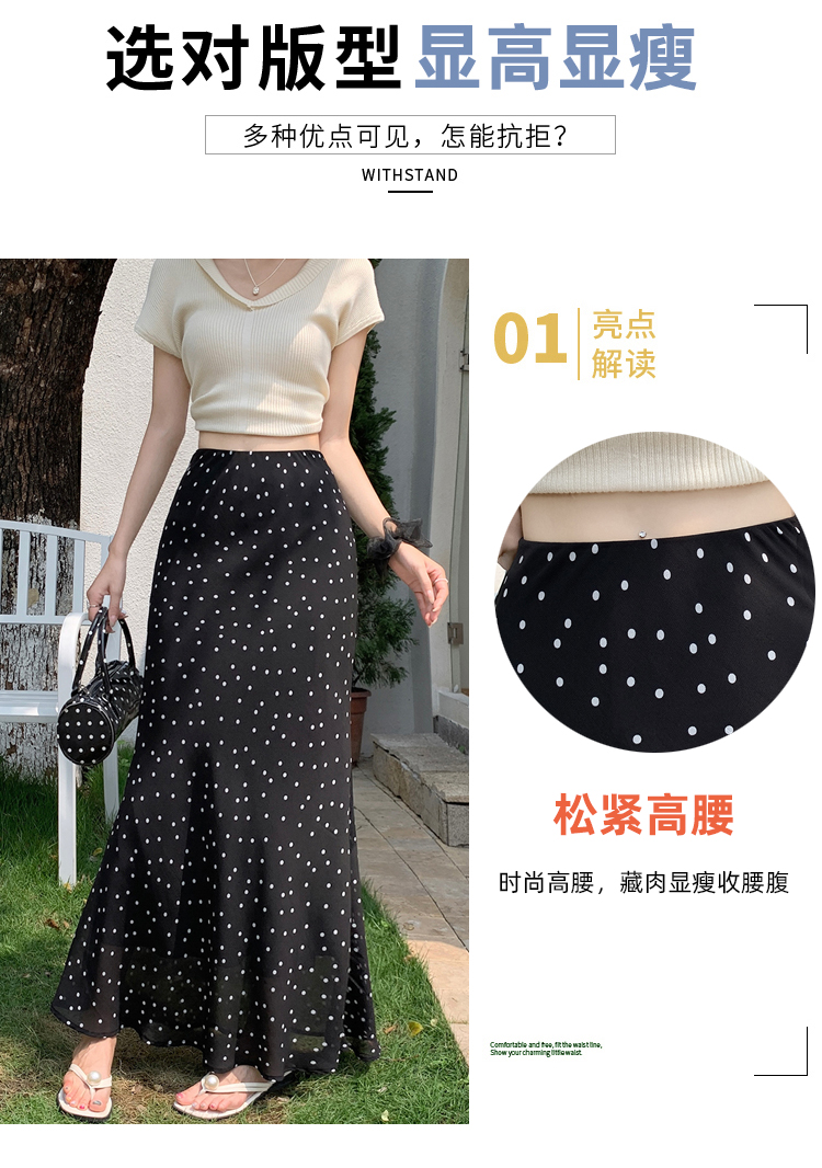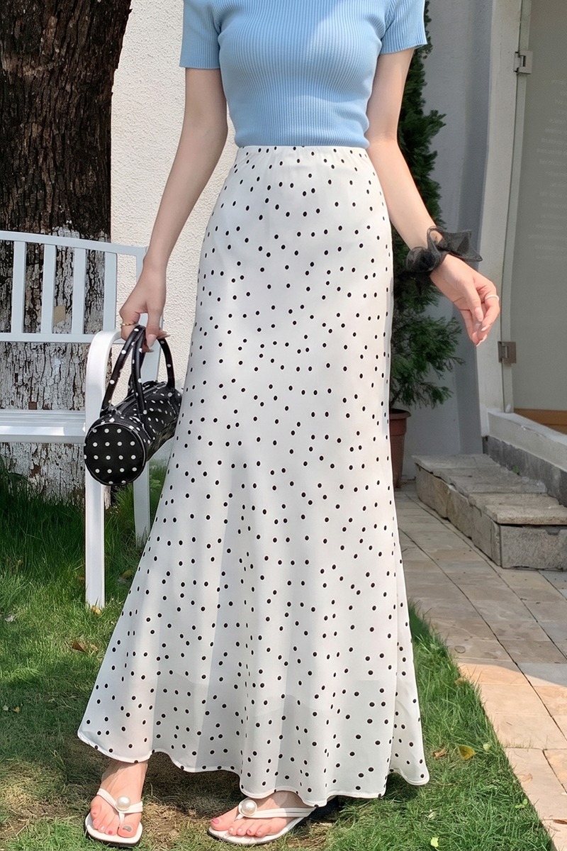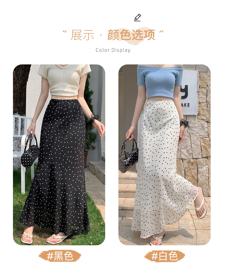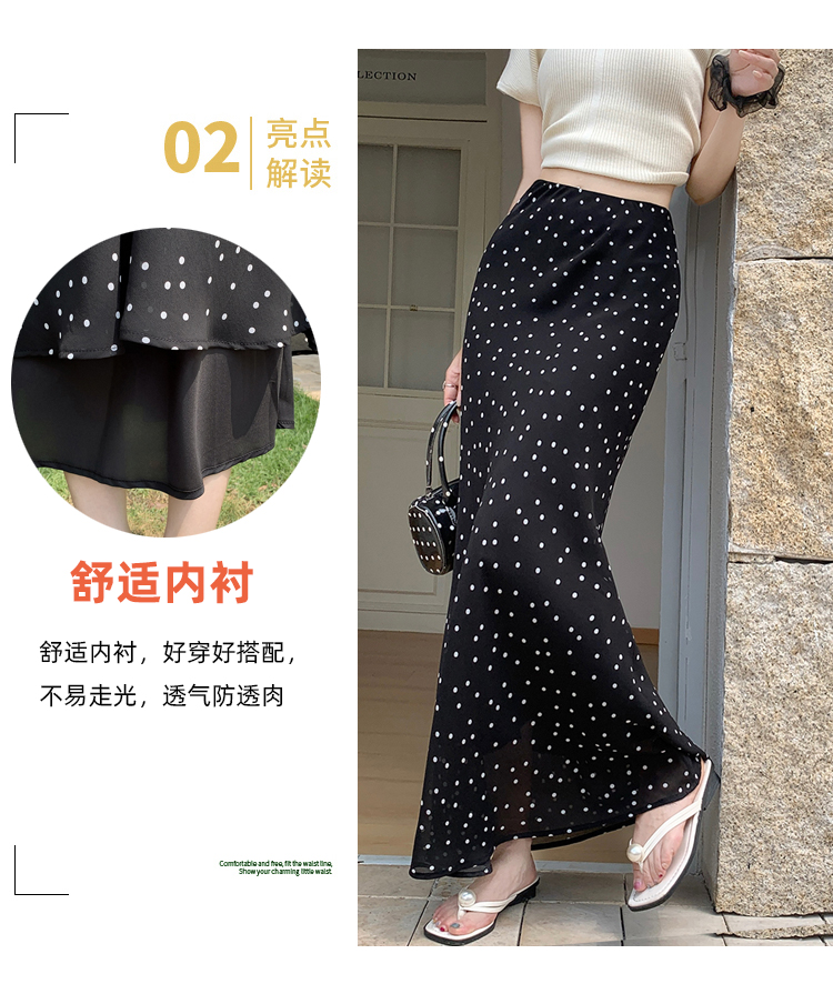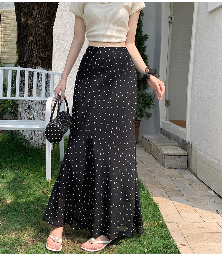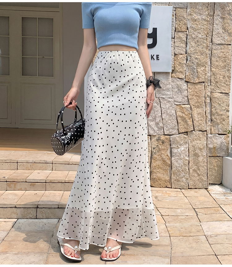 도트 무늬 쉬폰 인어 꼬리 반신 롱 스커트 여름 하이웨이스트 타이트 스커트 프릴 A라인 스커트 아이들 몸매 가꾸기 반신 스커트