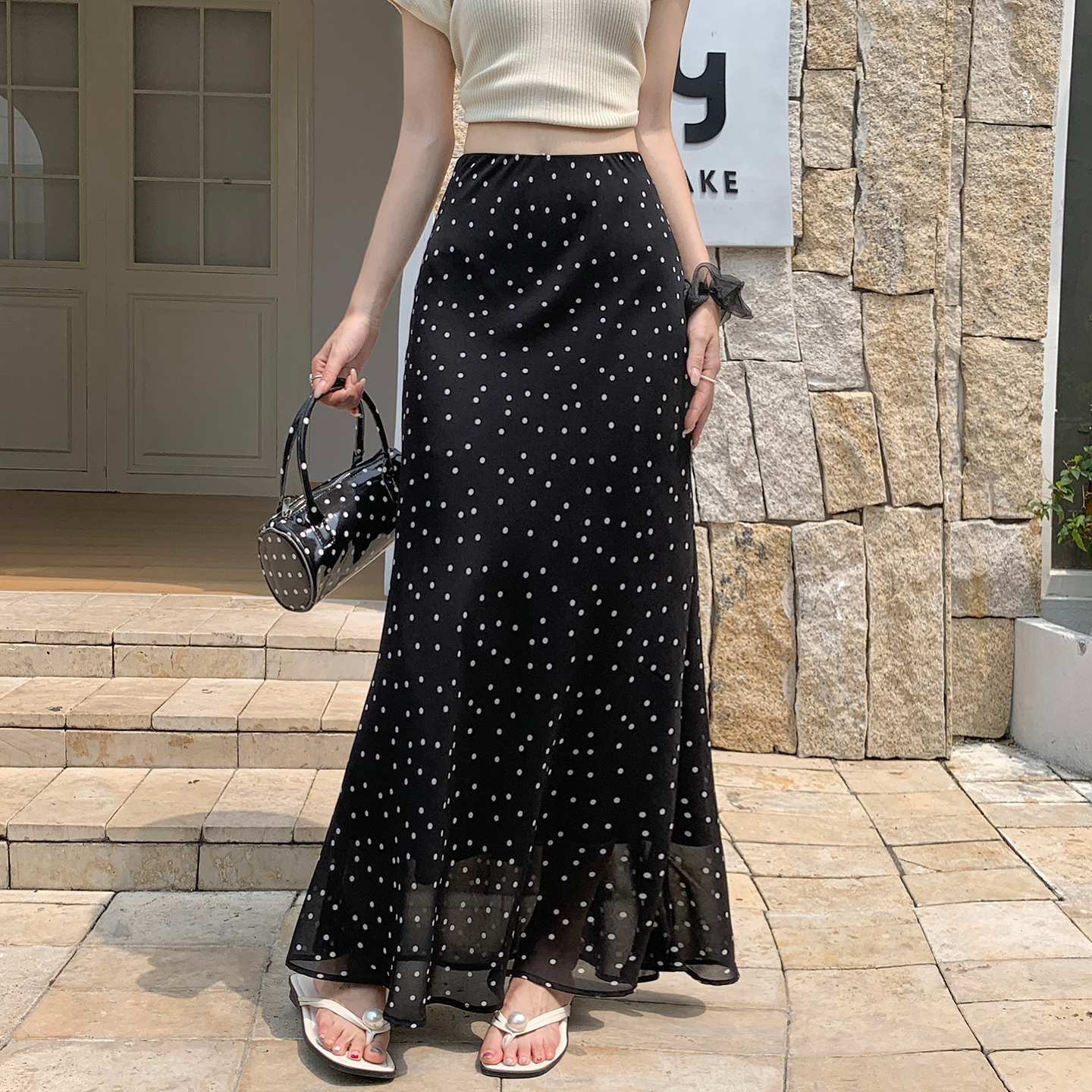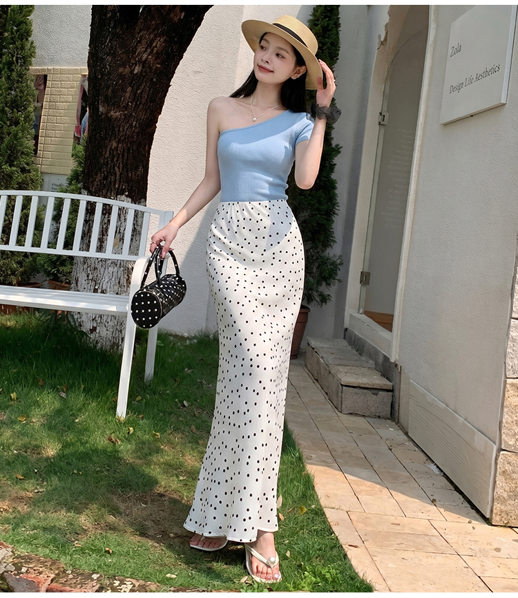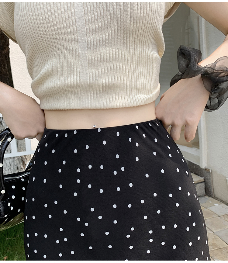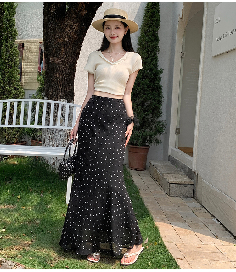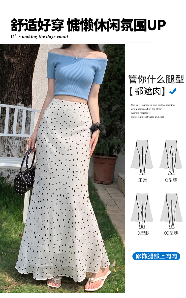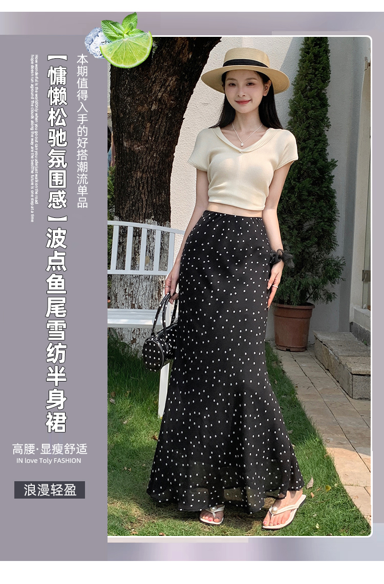 도트 무늬 쉬폰 인어 꼬리 반신 롱 스커트 여름 하이웨이스트 타이트 스커트 프릴 A라인 스커트 아이들 몸매 가꾸기 반신 스커트