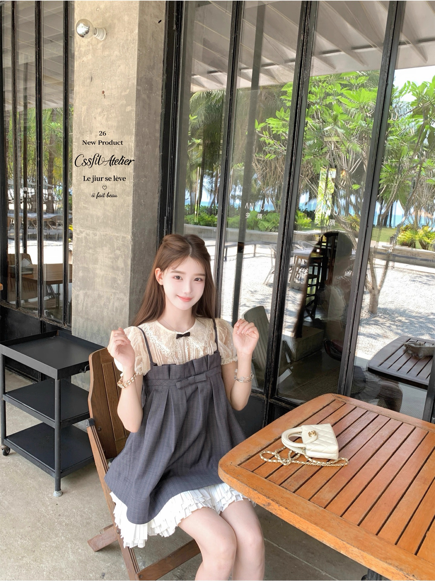 skk store 소녀 마음 민소매 작은 셔츠 순수한 욕망 망사 자카드 레이스 캐미솔 오픈 가디건