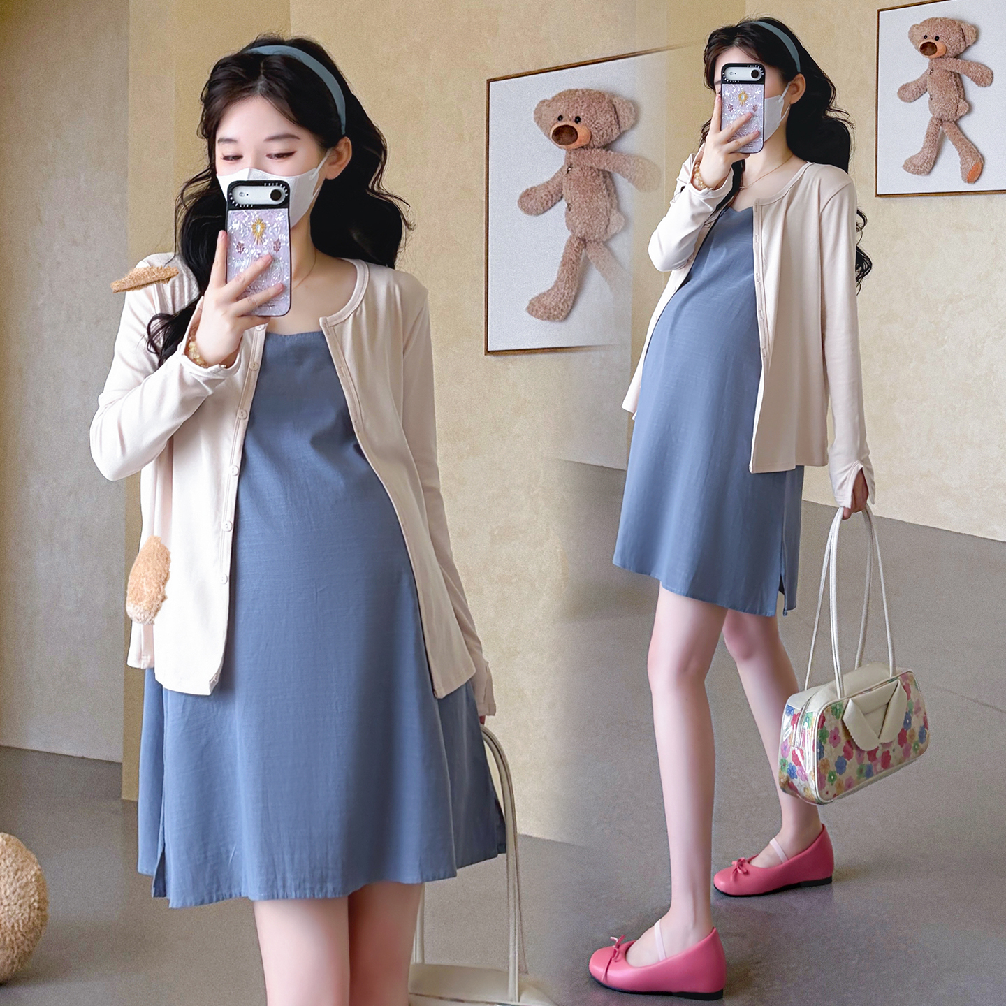 실사 지금 임산부 고유 한 아름다운 행침 목 오픈 가디건 슬림해 보이는 드레스 2 세트 세트