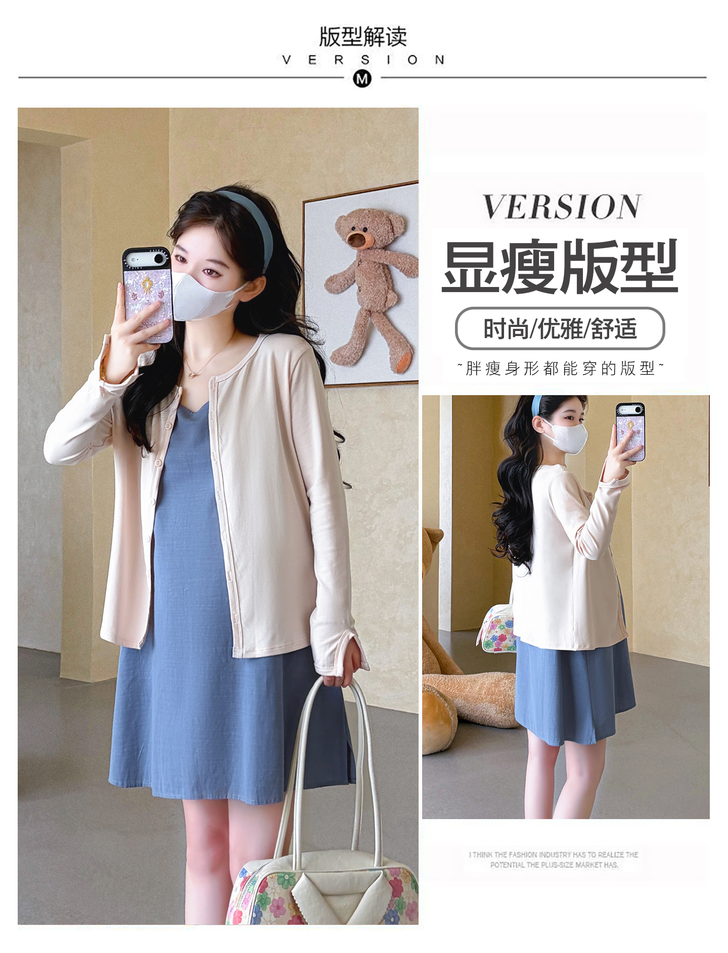 실사 임산부 한국 스타일 패션 루즈핏 조끼 원피스 자외선 차단 재킷 2 세트 매운맛 엄마